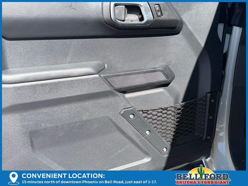 This Ford Bronco is equipped with the following options: Equipment Group 312A Mid Package (18" Bright Machined Aluminum Wheels, 3.73 Axle Ratio, AM/FM Stereo, Connected Navigation, Heated Leather-Trimmed/Vinyl Bucket Seats, SiriusXM with 360L, and SYNC 4), Ford Connectivity Package (1-Year Included), 4-Wheel Disc Brakes, 7 Speakers, ABS brakes, Air Conditioning, Alloy wheels, AM/FM radio: SiriusXM with 360L, Auto High-beam Headlights, Auto-dimming Rear-View mirror, Automatic temperature control, Brake assist, Compass, Delay-off headlights, Driver door bin, Driver vanity mirror, Dual front impact airbags, Dual front side impact airbags, Electronic Stability Control, Emergency communication system: 911 Assist, Exterior Parking Camera Rear, Front anti-roll bar, Front Bucket Seats, Front Center Armrest, Front dual zone A/C, Front fog lights, Front reading lights, Front wheel independent suspension, Fully automatic headlights, Hard Top Sound Deadening Headliner, Heated door mirrors, Heated front seats, Heated steering wheel, Illuminated entry, Integrated roll-over protection, Leather Shift Knob, Low tire pressure warning, Navigation system: Connected Navigation, Occupant sensing airbag, Outside temperature display, Overhead airbag, Overhead console, Panic alarm, Passenger door bin, Passenger vanity mirror, Power door mirrors, Power driver seat, Power passenger seat, Power steering, Power windows, Radio data system, Rear seat center armrest, Rear-Window Defroster and Washer, Remote keyless entry, Security system, Shadow Black-Painted Hard Top, Speed control, Split folding rear seat, Steering wheel mounted audio controls, Tachometer, Telescoping steering wheel, Tilt steering wheel, Traction control, Trip computer, Variably intermittent wipers, and Voltmeter. Price includes: $750 - Retail Customer Cash. Exp. 03/31/2026 Price includes dealer added accessories totaling $9,260.