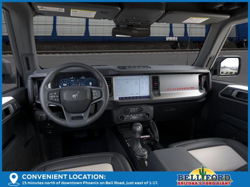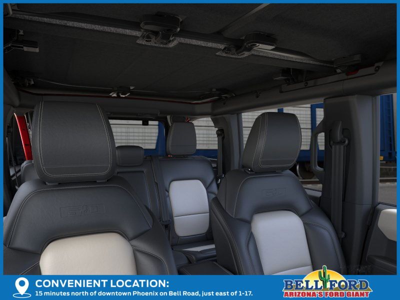 This Ford Bronco is equipped with the following options: 60th Anniversary Package (Black Molded-in-Color Door Handles, Hard Top Sound Deadening Headliner, Leather-Trimmed/Vinyl Bucket Seats, Painted Door Handles, Steel Front Bumper, Warm Alloy Grille, Wheels: 17" Gravity Gray-Painted Alloy, and Wimbledon White-Painted Hard Top), Equipment Group 314A Lux Package (18" Bright Machined Aluminum Wheels, 360-Degree Camera, Adaptive Cruise Control, Evasive Steering Assist, Front Parking Sensors, Heated Leather-Trimmed/Vinyl Bucket Seats, Information on Demand Panel, and Sideview Mirrors), Ford Connectivity Package (1-Year Included), Sasquatch Package (High Clearance Fender Flares, High Clearance Suspension, Position-Sensitive Bilstein Shock Absorbers, and Wheels: 17" Matte Black Alloy), 4-Wheel Disc Brakes, 7 Speakers, ABS brakes, Air Conditioning, Alloy wheels, AM/FM radio: SiriusXM with 360L, AM/FM Stereo, Auto High-beam Headlights, Auto-dimming Rear-View mirror, Automatic temperature control, Brake assist, Compass, Connected Navigation, Delay-off headlights, Driver door bin, Driver vanity mirror, Dual front impact airbags, Dual front side impact airbags, Electronic Stability Control, Emergency communication system: 911 Assist, Exterior Parking Camera Rear, Front anti-roll bar, Front Bucket Seats, Front Center Armrest, Front dual zone A/C, Front fog lights, Front reading lights, Front wheel independent suspension, Fully automatic headlights, Heated door mirrors, Heated front seats, Heated steering wheel, Illuminated entry, Integrated roll-over protection, Leather Shift Knob, Low tire pressure warning, Navigation system: Connected Navigation, Occupant sensing airbag, Outside temperature display, Overhead airbag, Overhead console, Panic alarm, Passenger door bin, Passenger vanity mirror, Power door mirrors, Power driver seat, Power passenger seat, Power steering, Power windows, Radio data system, Rear seat center armrest, Remote keyless entry, Security system, SiriusXM with 360L, Speed control, Split folding rear seat, Steering wheel mounted audio controls, SYNC 4, Tachometer, Telescoping steering wheel, Tilt steering wheel, Traction control, Trip computer, Variably intermittent wipers, and Voltmeter. Price includes: $750 - Retail Customer Cash. Exp. 03/31/2026