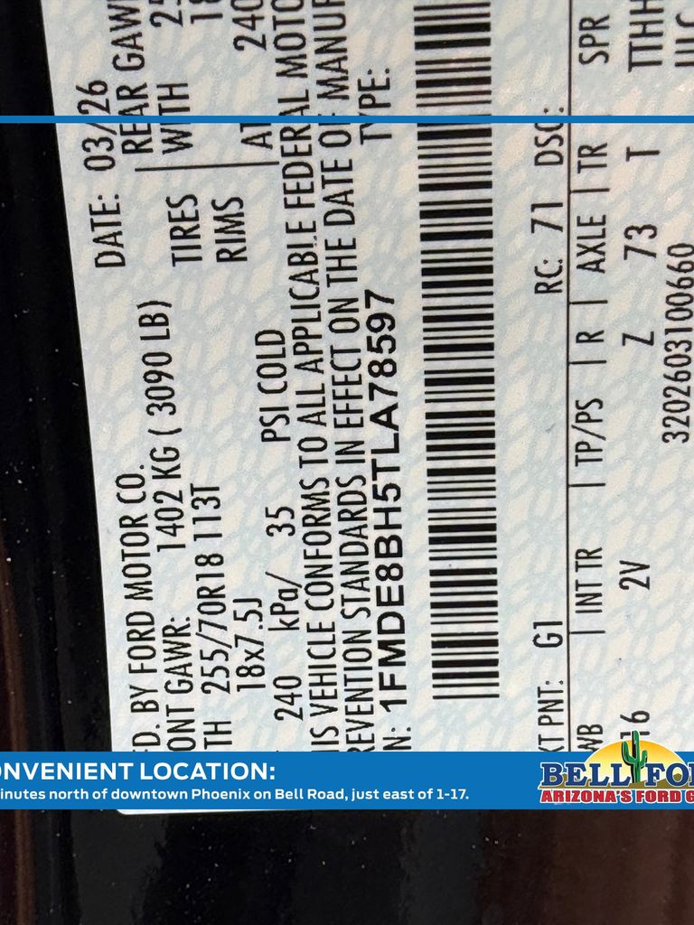 - VIN : 1FMDE8BH5TLA78597