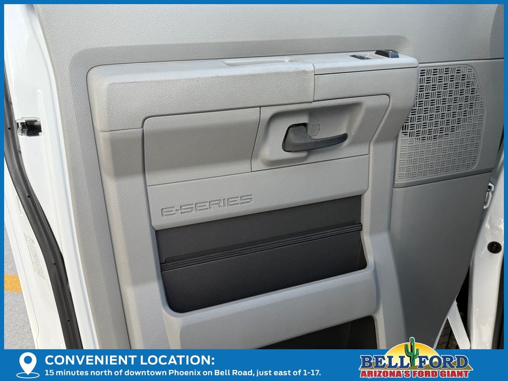 This Ford E-350SD is equipped with the following options: Class I Trailer Towing Package, High Series Exterior Upgrade Package (Chrome Grille and Front Chrome Bumper), Order Code 780A, Power Equipment Group (110V Power Inverter, Remote Keyless Entry, and SecuriLock Passive Anti-Theft System (ePATS)), 2 Speakers, 4-Wheel Disc Brakes, ABS brakes, Air Conditioning, AM/FM radio, Cruise Control, Driver door bin, Driver's Seat Mounted Armrest, Dual front impact airbags, Dual High Back Buckets, Electronic Stability Control, Frame Pucks (Isolators), Front anti-roll bar, Front Black Vinyl Floor Covering, Front Bucket Seats, Front wheel independent suspension, Fully automatic headlights, License Plate Bracket, Low tire pressure warning, Passenger door bin, Passenger seat mounted armrest, Power steering, Radio: AM/FM Stereo w/Clock Display & 2 Speakers, Rear View Camera Kit, Telescoping steering wheel, Tilt steering wheel, Traction control, User-Defined Switches, Variably intermittent wipers, Vinyl Bucket Seats, and Voltmeter.