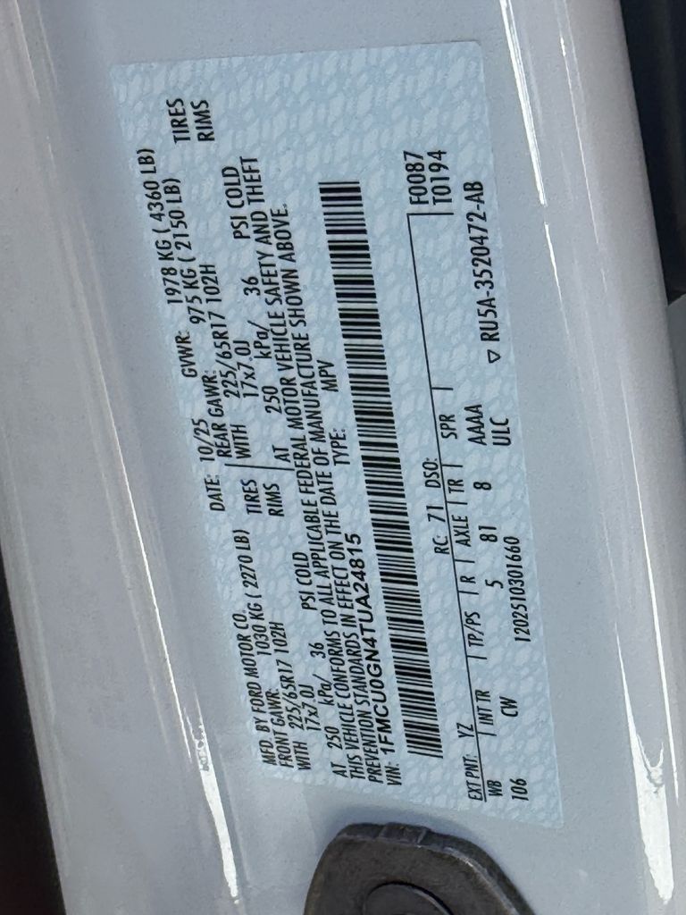 - VIN : 1FMCU0GN4TUA24815