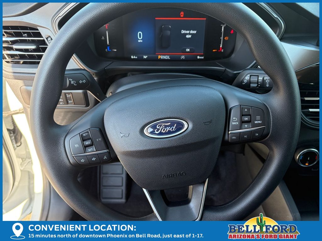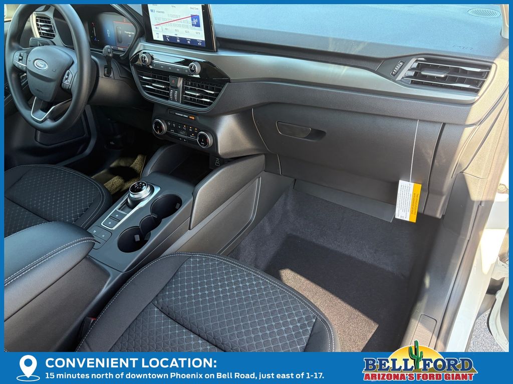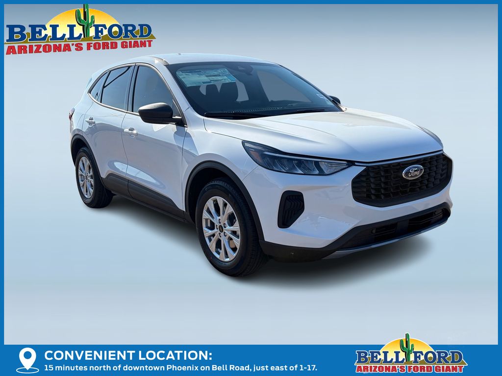 This Ford Escape is equipped with the following options: Equipment Group 200A (3.81 Axle Ratio, 4-Way Manual Front Passenger Seat, 6-Way Manual Driver Seat, Ford App, Radio: AM/FM Stereo with SiriusXM 360L, SYNC 4, Unique Cloth Front Bucket Seats, and Wheels: 17" Shadow Silver-Painted Aluminum), 4-Wheel Disc Brakes, 6 Speakers, ABS brakes, Air Conditioning, Alloy wheels, AM/FM radio: SiriusXM 360L, Auto High-beam Headlights, Automatic temperature control, Brake assist, Bumpers: body-color, Compass, Delay-off headlights, Driver door bin, Driver vanity mirror, Dual front impact airbags, Dual front side impact airbags, Electronic Stability Control, Emergency communication system: SYNC 4 911 Assist, Four wheel independent suspension, Front anti-roll bar, Front Bucket Seats, Front Center Armrest, Front dual zone A/C, Front reading lights, Fully automatic headlights, Illuminated entry, Knee airbag, Low tire pressure warning, Occupant sensing airbag, Outside temperature display, Overhead airbag, Overhead console, Panic alarm, Passenger door bin, Passenger vanity mirror, Power door mirrors, Power steering, Power windows, Radio data system, Rear anti-roll bar, Rear reading lights, Rear seat center armrest, Rear window defroster, Rear window wiper, Remote keyless entry, Speed control, Speed-sensing steering, Speed-Sensitive Wipers, Split folding rear seat, Spoiler, Steering wheel mounted audio controls, Tachometer, Telescoping steering wheel, Tilt steering wheel, Traction control, Trip computer, and Variably intermittent wipers. Price includes: $2000 - Bonus Customer Cash. Exp. 01/05/2026
