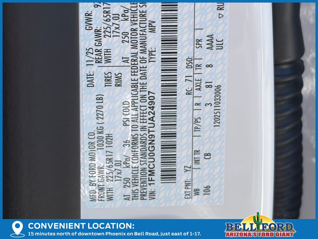 - VIN : 1FMCU0GN9TUA24907
