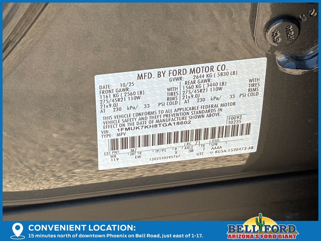 - VIN : 1FMUK7KH8TGA18602