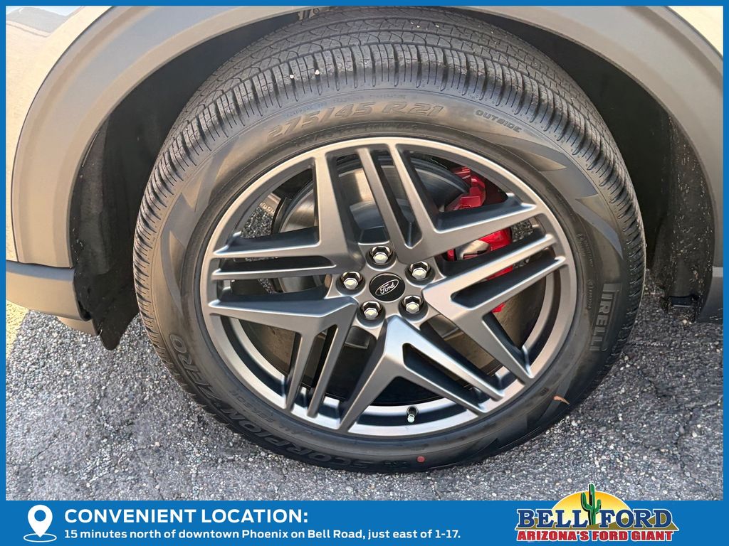 This Ford Explorer is equipped with the following options: Equipment Group 300A Standard Package (Heated Unique Cloth Captain's Chairs, Radio: B&O Sound System by Bang and Olufsen, and Wheels: 20" Ebony-Painted Machined Aluminum), Premium Package (110V/150W AC Power Outlet, 2nd Row Heated Seats, Ambient Lighting, Auto-Dimming Interior Rear-View Mirror, Manual-Folding Sideview Mirrors, Memory Driver's Seat, and Rain-Sensing Wipers (front Only)), ST-Line Street Pack (Performance Brakes, Red Painted Performance Front and Rear Brake Calipers, and Wheels: 21" Magnetite-Painted Aluminum), 10 Speakers, 2nd Row Captain's Chairs w/E-Z Entry and Armrest, 3rd row seats: bench, 4-Wheel Disc Brakes, ABS brakes, Air Conditioning, Alloy wheels, AM/FM radio: SiriusXM with 360L, Apple CarPlay/Android Auto, Auto High-beam Headlights, Automatic temperature control, Brake assist, Bumpers: body-color, Compass, Delay-off headlights, Driver door bin, Driver vanity mirror, Dual front impact airbags, Dual front side impact airbags, Electronic Stability Control, Emergency communication system: 911 Assist, Exterior Parking Camera Rear, Four wheel independent suspension, Front anti-roll bar, Front Bucket Seats, Front Center Armrest, Front dual zone A/C, Front fog lights, Front reading lights, Fully automatic headlights, Garage door transmitter, Heated door mirrors, Heated front seats, Heated steering wheel, Illuminated entry, Knee airbag, Leather steering wheel, Low tire pressure warning, Navigation System, Occupant sensing airbag, Outside temperature display, Overhead airbag, Overhead console, Panic alarm, Passenger door bin, Passenger vanity mirror, Power door mirrors, Power driver seat, Power Liftgate, Power passenger seat, Power steering, Power windows, Rear air conditioning, Rear anti-roll bar, Rear reading lights, Rear window defroster, Rear window wiper, Remote keyless entry, Security system, Speed control, Speed-sensing steering, Speed-Sensitive Wipers, Split folding rear seat, Spoiler, Steering wheel mounted audio controls, Tachometer, Telescoping steering wheel, Tilt steering wheel, Traction control, Trip computer, and Variably intermittent wipers. Price includes: $1000 - Retail Bonus Cash. Exp. 03/31/2026 $2500 - Retail Customer Cash. Exp. 03/31/2026