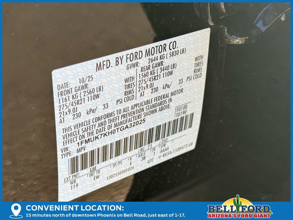 - VIN : 1FMUK7KH0TGA32025