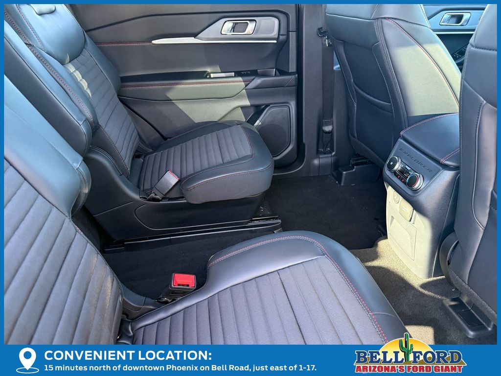 This Ford Explorer is equipped with the following options: Equipment Group 300A Standard Package (Heated Unique Cloth Captain's Chairs, Radio: B&O Sound System by Bang and Olufsen, and Wheels: 20" Ebony-Painted Machined Aluminum), Premium Package (110V/150W AC Power Outlet, 2nd Row Heated Seats, Ambient Lighting, Auto-Dimming Interior Rear-View Mirror, Manual-Folding Sideview Mirrors, Memory Driver's Seat, and Rain-Sensing Wipers (front Only)), ST-Line Street Pack (Performance Brakes, Red Painted Performance Front and Rear Brake Calipers, and Wheels: 21" Magnetite-Painted Aluminum), 10 Speakers, 2nd Row Captain's Chairs w/E-Z Entry and Armrest, 3rd row seats: bench, 4-Wheel Disc Brakes, ABS brakes, Air Conditioning, Alloy wheels, AM/FM radio: SiriusXM with 360L, Apple CarPlay/Android Auto, Auto High-beam Headlights, Automatic temperature control, Brake assist, Bumpers: body-color, Compass, Delay-off headlights, Driver door bin, Driver vanity mirror, Dual front impact airbags, Dual front side impact airbags, Electronic Stability Control, Emergency communication system: 911 Assist, Exterior Parking Camera Rear, Four wheel independent suspension, Front anti-roll bar, Front Bucket Seats, Front Center Armrest, Front dual zone A/C, Front fog lights, Front reading lights, Fully automatic headlights, Garage door transmitter, Heated door mirrors, Heated front seats, Heated steering wheel, Illuminated entry, Knee airbag, Leather steering wheel, Low tire pressure warning, Navigation System, Occupant sensing airbag, Outside temperature display, Overhead airbag, Overhead console, Panic alarm, Passenger door bin, Passenger vanity mirror, Power door mirrors, Power driver seat, Power Liftgate, Power passenger seat, Power steering, Power windows, Rear air conditioning, Rear anti-roll bar, Rear reading lights, Rear window defroster, Rear window wiper, Remote keyless entry, Security system, Speed control, Speed-sensing steering, Speed-Sensitive Wipers, Split folding rear seat, Spoiler, Steering wheel mounted audio controls, Tachometer, Telescoping steering wheel, Tilt steering wheel, Traction control, Trip computer, and Variably intermittent wipers. Price includes: $1000 - Retail Bonus Cash. Exp. 03/31/2026 $2500 - Retail Customer Cash. Exp. 03/31/2026