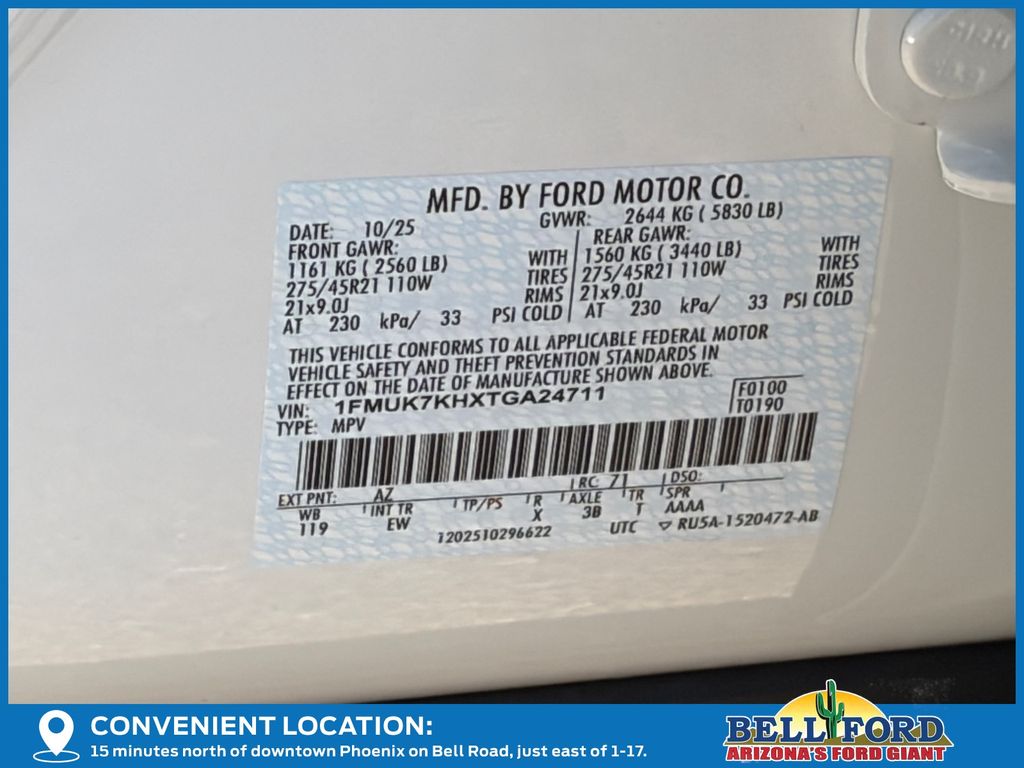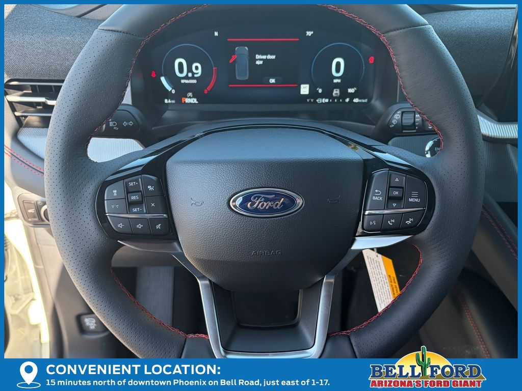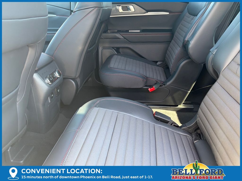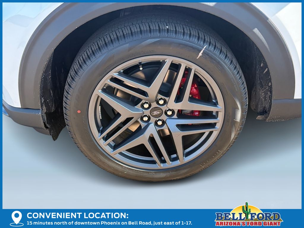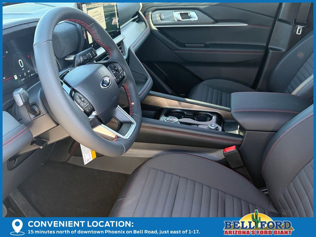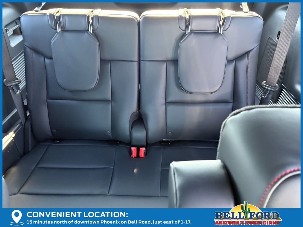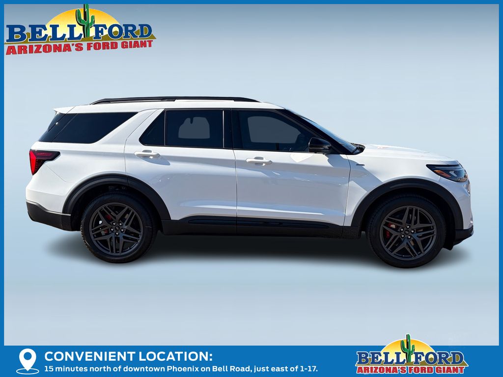 This Ford Explorer is equipped with the following options: Equipment Group 300A Standard Package (Heated Unique Cloth Captain's Chairs, Radio: B&O Sound System by Bang and Olufsen, and Wheels: 20" Ebony-Painted Machined Aluminum), Premium Package (110V/150W AC Power Outlet, 2nd Row Heated Seats, Ambient Lighting, Auto-Dimming Interior Rear-View Mirror, Manual-Folding Sideview Mirrors, Memory Driver's Seat, and Rain-Sensing Wipers (front Only)), ST-Line Street Pack (Performance Brakes, Red Painted Performance Front and Rear Brake Calipers, and Wheels: 21" Magnetite-Painted Aluminum), 10 Speakers, 2nd Row Captain's Chairs w/E-Z Entry and Armrest, 3rd row seats: bench, 4-Wheel Disc Brakes, ABS brakes, Air Conditioning, Alloy wheels, AM/FM radio: SiriusXM with 360L, Apple CarPlay/Android Auto, Auto High-beam Headlights, Automatic temperature control, Brake assist, Bumpers: body-color, Compass, Delay-off headlights, Driver door bin, Driver vanity mirror, Dual front impact airbags, Dual front side impact airbags, Electronic Stability Control, Emergency communication system: 911 Assist, Exterior Parking Camera Rear, Four wheel independent suspension, Front anti-roll bar, Front Bucket Seats, Front Center Armrest, Front dual zone A/C, Front fog lights, Front reading lights, Fully automatic headlights, Garage door transmitter, Heated door mirrors, Heated front seats, Heated steering wheel, Illuminated entry, Internet access capable: FordPass Connect 5G, Knee airbag, Leather steering wheel, Low tire pressure warning, Navigation System, Occupant sensing airbag, Outside temperature display, Overhead airbag, Overhead console, Panic alarm, Passenger door bin, Passenger vanity mirror, Power door mirrors, Power driver seat, Power Liftgate, Power passenger seat, Power steering, Power windows, Rear air conditioning, Rear anti-roll bar, Rear reading lights, Rear window defroster, Rear window wiper, Remote keyless entry, Security system, Speed control, Speed-sensing steering, Speed-Sensitive Wipers, Split folding rear seat, Spoiler, Steering wheel mounted audio controls, Tachometer, Telescoping steering wheel, Tilt steering wheel, Traction control, Trip computer, and Variably intermittent wipers. Price includes: $1000 - Retail Customer Cash. Exp. 01/05/2026 $500 - Bonus Customer Cash. Exp. 01/05/2026