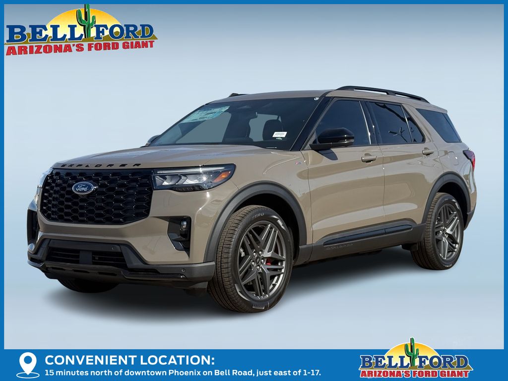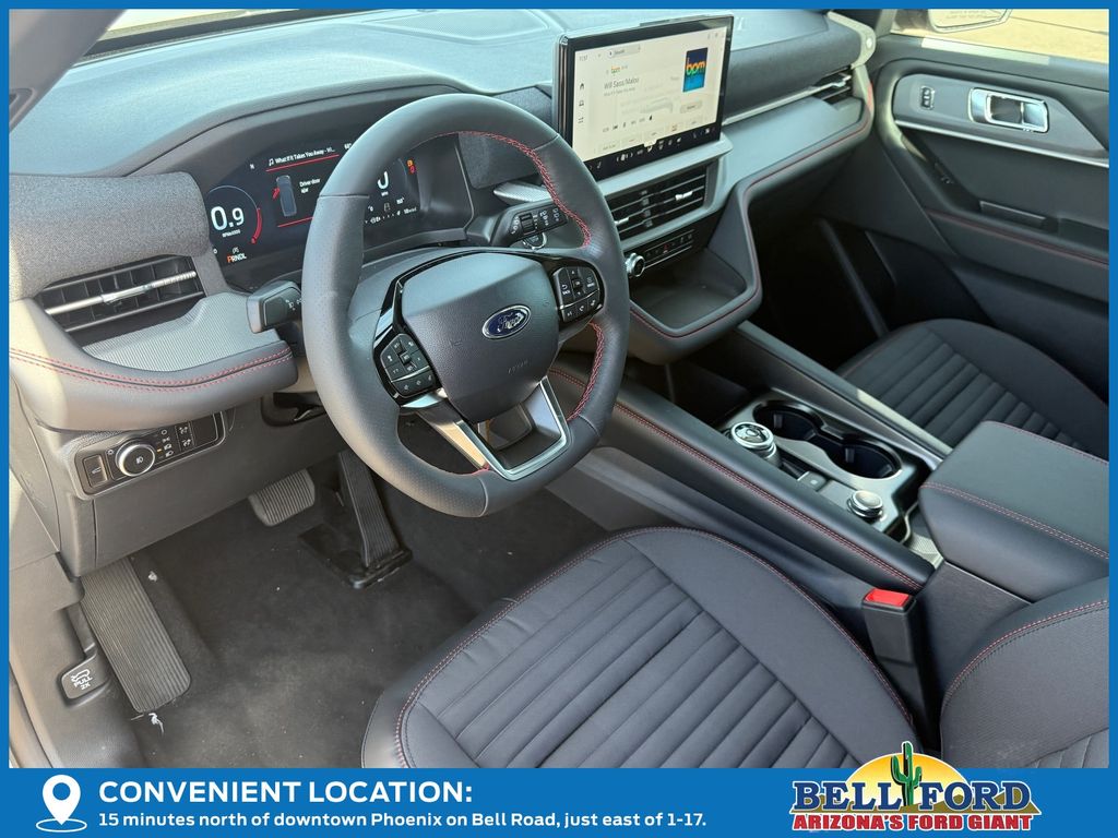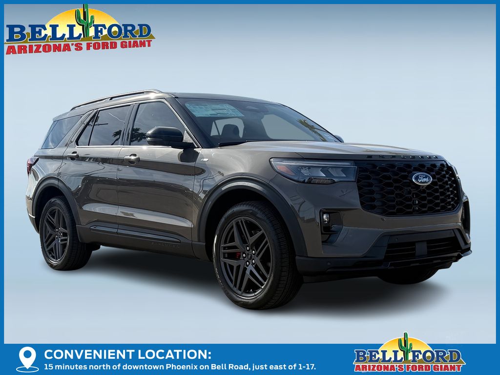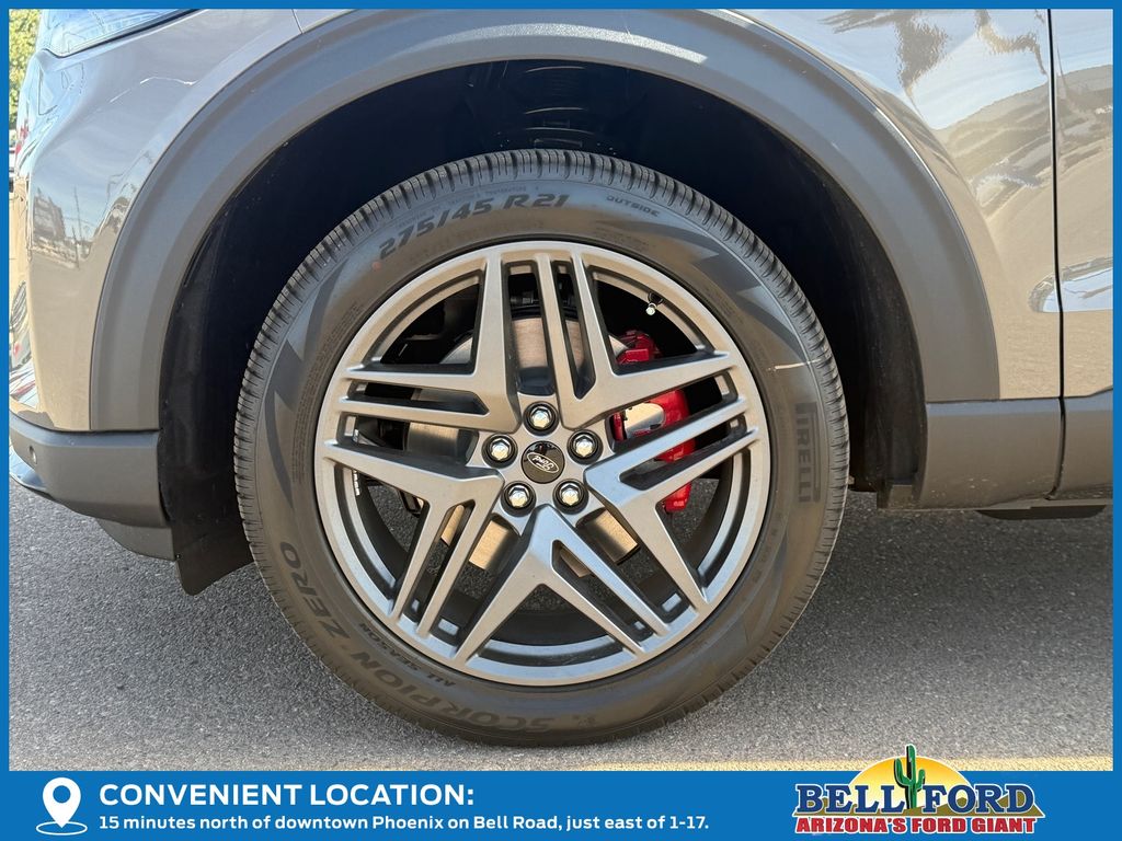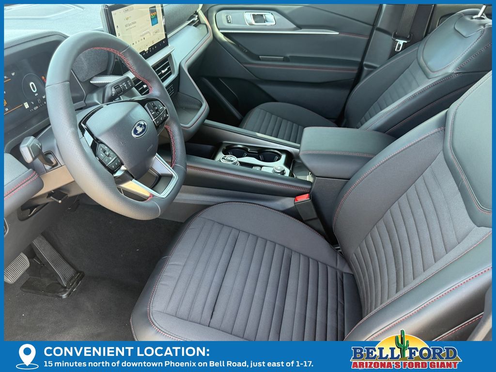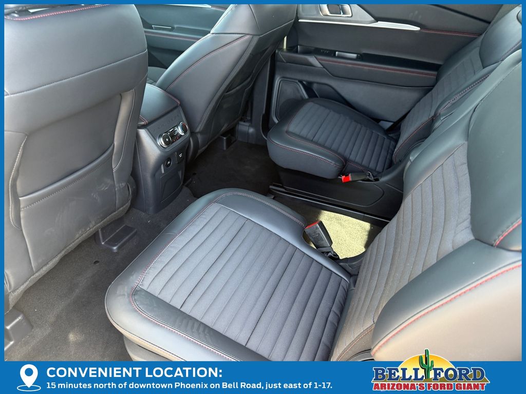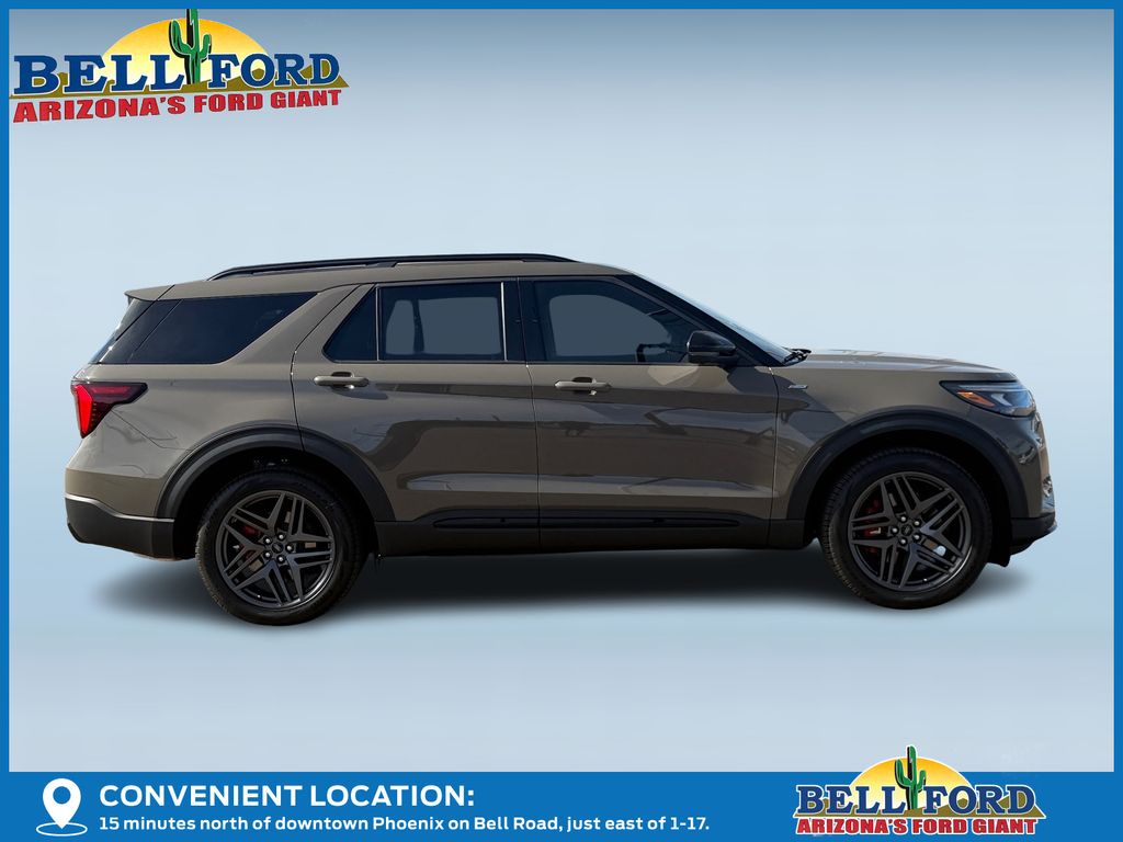 This Ford Explorer is equipped with the following options: Equipment Group 300A Standard Package (Heated Unique Cloth Captain's Chairs, Radio: B&O Sound System by Bang and Olufsen, and Wheels: 20" Ebony-Painted Machined Aluminum), Premium Package (110V/150W AC Power Outlet, 2nd Row Heated Seats, Ambient Lighting, Auto-Dimming Interior Rear-View Mirror, Manual-Folding Sideview Mirrors, Memory Driver's Seat, and Rain-Sensing Wipers (front Only)), ST-Line Street Pack (Performance Brakes, Red Painted Performance Front and Rear Brake Calipers, and Wheels: 21" Magnetite-Painted Aluminum), 4WD, 10 Speakers, 2nd Row Captain's Chairs w/E-Z Entry and Armrest, 3rd row seats: bench, 4-Wheel Disc Brakes, ABS brakes, Air Conditioning, Alloy wheels, AM/FM radio: SiriusXM with 360L, Apple CarPlay/Android Auto, Auto High-beam Headlights, Automatic temperature control, Brake assist, Bumpers: body-color, Compass, Delay-off headlights, Driver door bin, Driver vanity mirror, Dual front impact airbags, Dual front side impact airbags, Electronic Stability Control, Emergency communication system: 911 Assist, Exterior Parking Camera Rear, Four wheel independent suspension, Front anti-roll bar, Front Bucket Seats, Front Center Armrest, Front dual zone A/C, Front fog lights, Front reading lights, Fully automatic headlights, Garage door transmitter, Heated door mirrors, Heated front seats, Heated steering wheel, Illuminated entry, Knee airbag, Leather steering wheel, Low tire pressure warning, Navigation System, Occupant sensing airbag, Outside temperature display, Overhead airbag, Overhead console, Panic alarm, Panoramic Fixed Glass Roof with Power Shade, Passenger door bin, Passenger vanity mirror, Power door mirrors, Power driver seat, Power Liftgate, Power passenger seat, Power steering, Power windows, Rear air conditioning, Rear anti-roll bar, Rear reading lights, Rear window defroster, Rear window wiper, Remote keyless entry, Security system, Speed control, Speed-sensing steering, Speed-Sensitive Wipers, Split folding rear seat, Spoiler, Steering wheel mounted audio controls, Tachometer, Telescoping steering wheel, Tilt steering wheel, Traction control, Trip computer, and Variably intermittent wipers. Price includes: $2500 - Retail Customer Cash. Exp. 03/31/2026
