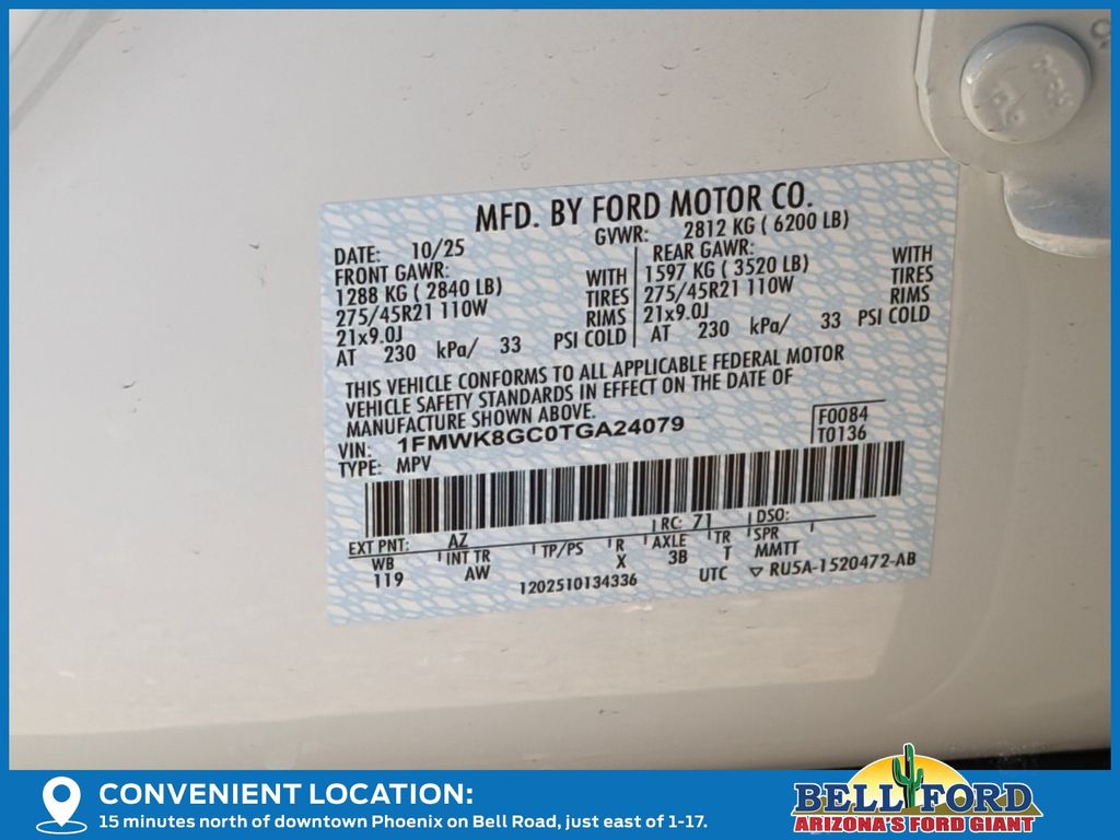 - VIN : 1FMWK8GC0TGA24079