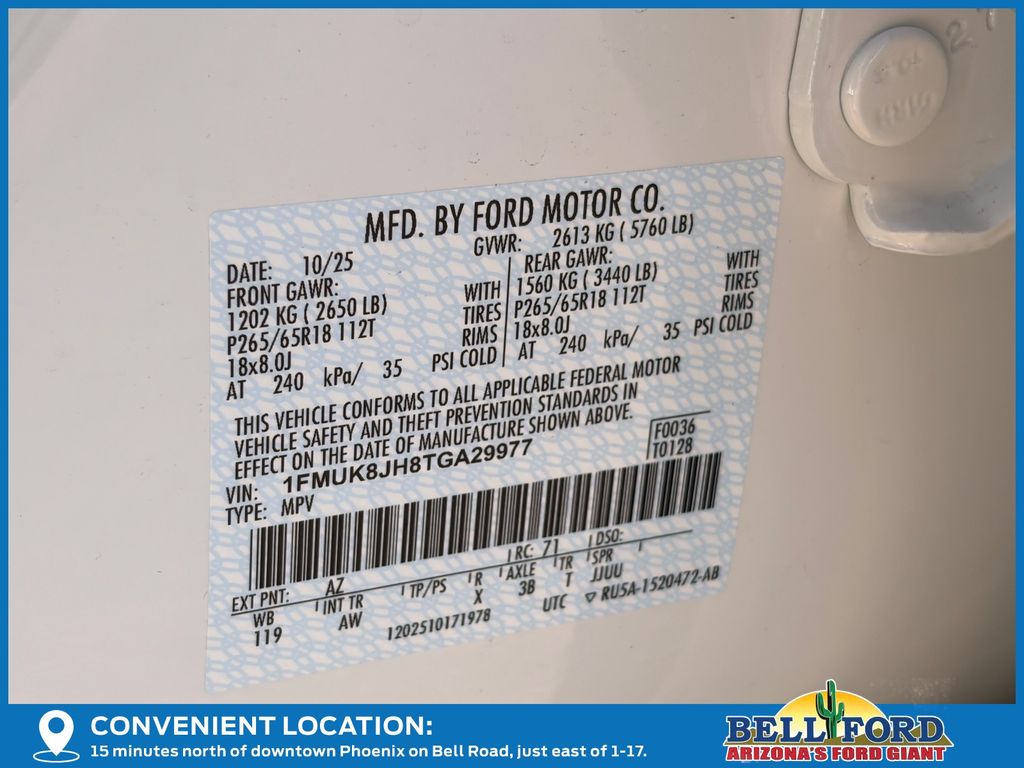 - VIN : 1FMUK8JH8TGA29977