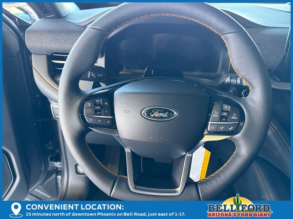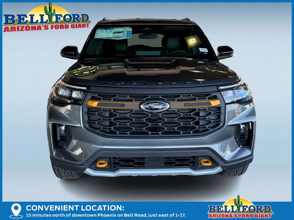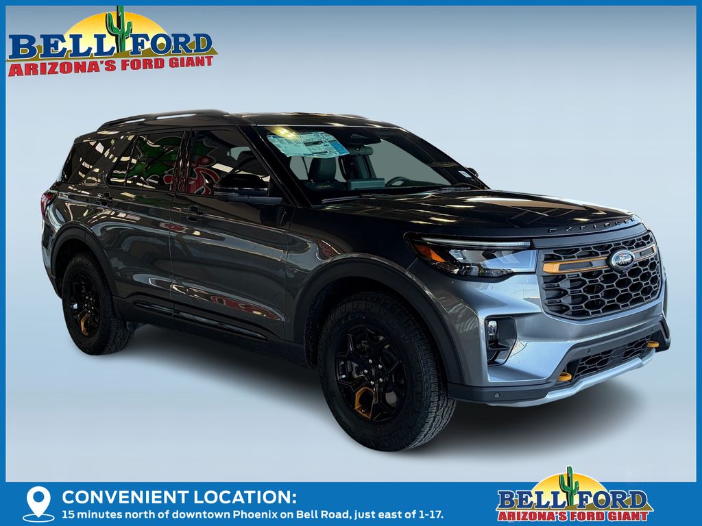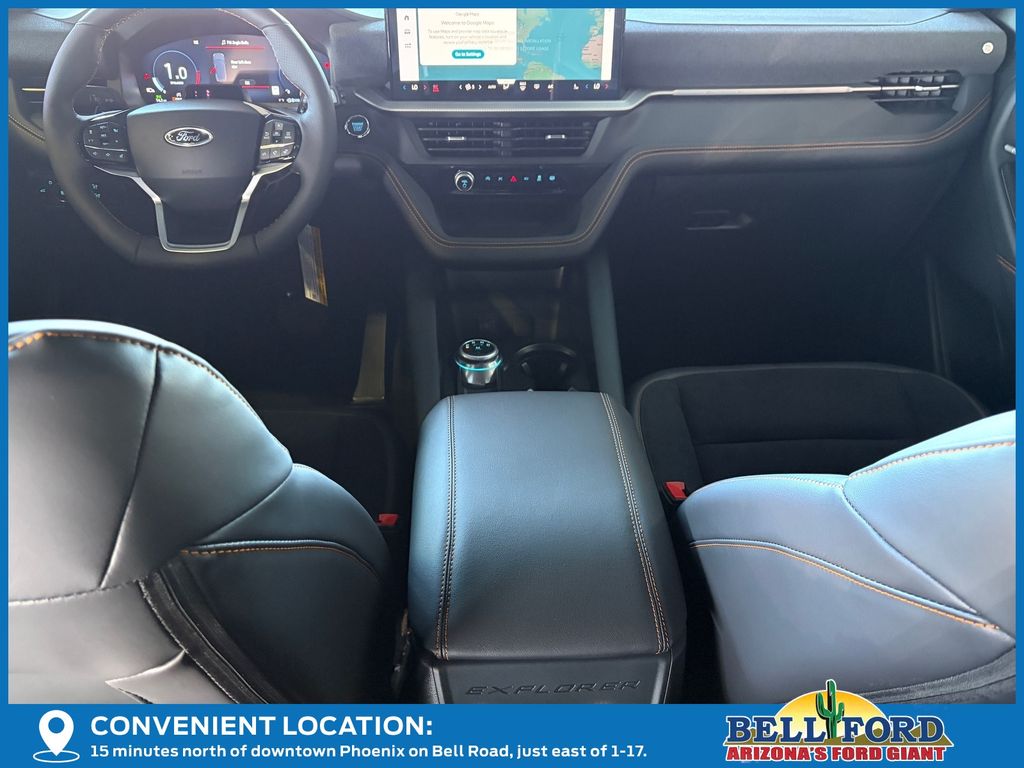 This Ford Explorer is equipped with the following options: Equipment Group 800A Standard Package (Heated/Ventilated Miko Captain's Chairs, Radio: B&O Sound System by Bang and Olufsen, and Wheels: 18" High Gloss Black-Painted Aluminum), 4WD, 10 Speakers, 3rd row seats: bench, 4-Wheel Disc Brakes, ABS brakes, Air Conditioning, Alloy wheels, AM/FM radio: SiriusXM with 360L, Apple CarPlay/Android Auto, Auto High-beam Headlights, Automatic temperature control, BlueCruise Hardware, Brake assist, Bumpers: body-color, Compass, Delay-off headlights, Driver door bin, Driver vanity mirror, Dual front impact airbags, Dual front side impact airbags, Electronic Stability Control, Emergency communication system: 911 Assist, Exterior Parking Camera Rear, Four wheel independent suspension, Front anti-roll bar, Front Bucket Seats, Front Center Armrest, Front dual zone A/C, Front fog lights, Front reading lights, Fully automatic headlights, Heated door mirrors, Heated front seats, Heated rear seats, Heated steering wheel, Illuminated entry, Internet access capable: FordPass Connect 5G, Knee airbag, Leather steering wheel, Low tire pressure warning, Navigation System, Occupant sensing airbag, Outside temperature display, Overhead airbag, Overhead console, Panic alarm, Passenger door bin, Passenger vanity mirror, Power door mirrors, Power driver seat, Power Liftgate, Power passenger seat, Power steering, Power windows, Rear air conditioning, Rear anti-roll bar, Rear reading lights, Rear window defroster, Rear window wiper, Remote keyless entry, Security system, Speed control, Speed-sensing steering, Speed-Sensitive Wipers, Split folding rear seat, Spoiler, Sport steering wheel, Steering wheel mounted audio controls, Tachometer, Telescoping steering wheel, Tilt steering wheel, Traction control, Trip computer, Variably intermittent wipers, and Ventilated front seats. Price includes: $1000 - Retail Customer Cash. Exp. 01/05/2026 $500 - Bonus Customer Cash. Exp. 01/05/2026