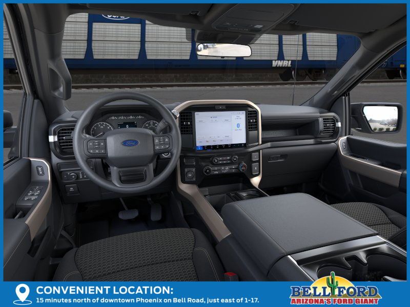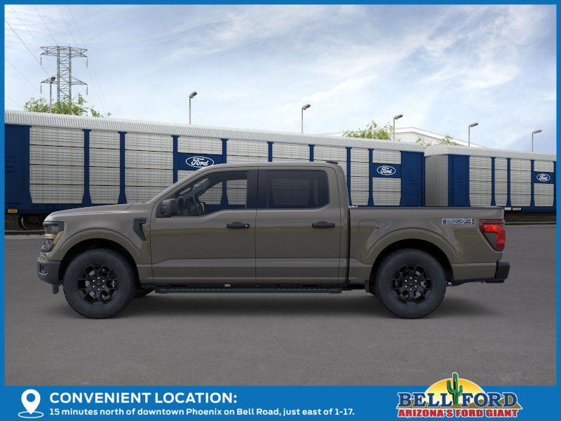 This Ford F-150 is equipped with the following options: Equipment Group 201A FX4 (12" Cluster Display, 6" Black Running Boards, Argent Front/Rear Bumper, Dual Exhaust with Black Tips, FX4 Box Decal, LED Fog Lamps with LED Cornering Lamp, Monotube Rear Shocks, Off-Road Tuned Front Shock Absorbers, Radio: AM/FM Stereo with SiriusXM 360L, STX Badge in Fender Vent, SYNC 4 with Enhanced Voice Recognition, Unique Cloth 40/Console/40 Front Seats, and Wheels: 18" Black Painted Aluminum), Ford Connectivity Package (1-Year Included), GVWR: 6,650 lbs Payload Package, Internet access capable: 5G Modem - Ford Connectivity Package, 4WD, 4-Wheel Disc Brakes, 6 Speakers, ABS brakes, Air Conditioning, Alloy wheels, AM/FM radio: SiriusXM with 360L, Auto High-beam Headlights, Brake assist, Bumpers: body-color, Compass, Delay-off headlights, Driver door bin, Dual front impact airbags, Dual front side impact airbags, Electronic Stability Control, Emergency communication system: SYNC 4 911 Assist, Front anti-roll bar, Front Bucket Seats, Front Center Armrest, Front reading lights, Front wheel independent suspension, Fully automatic headlights, Heated door mirrors, Illuminated entry, Low tire pressure warning, Occupant sensing airbag, Outside temperature display, Overhead airbag, Overhead console, Panic alarm, Passenger door bin, Passenger vanity mirror, Power door mirrors, Power steering, Power windows, Radio data system, Rear step bumper, Rear window defroster, Remote keyless entry, Security system, Speed control, Split folding rear seat, Steering wheel mounted audio controls, Tachometer, Telescoping steering wheel, Tilt steering wheel, Traction control, Tray Style Floor Liner with Carpet Mats, Trip computer, Unique Sport Cloth 40/Console/40 Front-Seats, Variably intermittent wipers, and Wheels: 18" Gloss Black. Price includes: $2500 - Retail Customer Cash. Exp. 04/30/2026