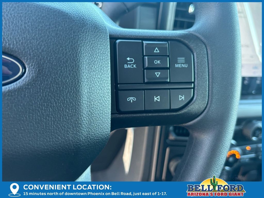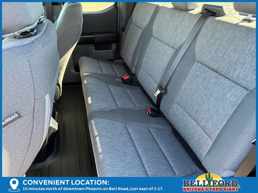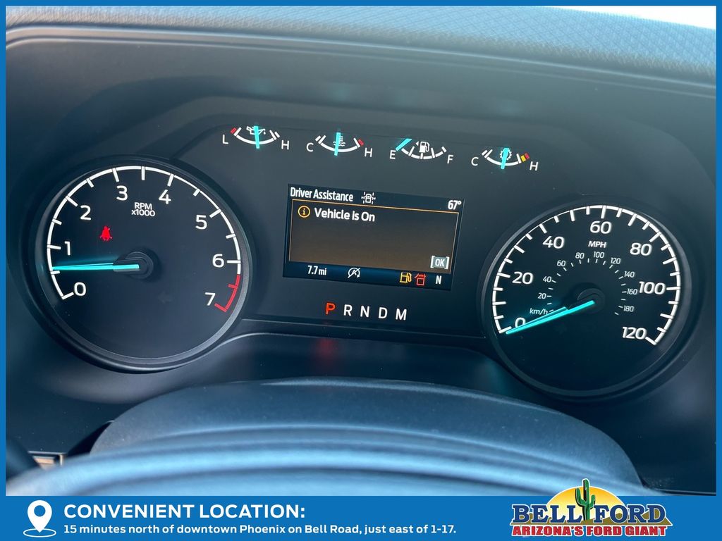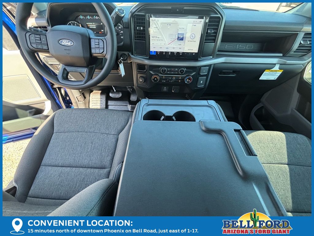 This Ford F-150 is equipped with the following options: Equipment Group 103A High (3.55 Axle Ratio, Chrome Bumpers, Cloth 40/20/40 Front Seat, Interior Work Surfaces, LED Fog Lamps, Radio: AM/FM Stereo with SiriusXM 360L, Rear Window Fixed Privacy Glass with Defroster, SYNC 4 with Enhanced Voice Recognition, and Wheels: 17" Silver Painted Aluminum), Ford Connectivity Package (1-Year Included), GVWR: 6,365 lbs Payload Package, Internet access capable: 5G Modem - Ford Connectivity Package, 4-Wheel Disc Brakes, 6 Speakers, ABS brakes, Air Conditioning, AM/FM radio: SiriusXM with 360L, Auto High-beam Headlights, Brake assist, Compass, Delay-off headlights, Driver door bin, Dual front impact airbags, Dual front side impact airbags, Electronic Stability Control, Emergency communication system: SYNC 4 911 Assist, Front anti-roll bar, Front Center Armrest, Front reading lights, Front wheel independent suspension, Fully automatic headlights, Heated door mirrors, Illuminated entry, Low tire pressure warning, Occupant sensing airbag, Outside temperature display, Overhead airbag, Overhead console, Panic alarm, Passenger door bin, Passenger vanity mirror, Power door mirrors, Power steering, Power windows, Radio data system, Rear Parking Sensors, Rear step bumper, Remote keyless entry, Security system, Speed control, Split folding rear seat, Steering wheel mounted audio controls, Tachometer, Telescoping steering wheel, Tilt steering wheel, Traction control, Trip computer, Variably intermittent wipers, and Wheels: 17" Silver Steel.