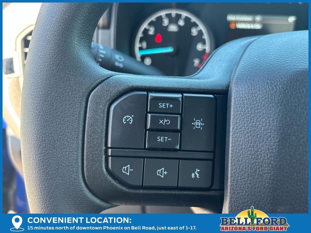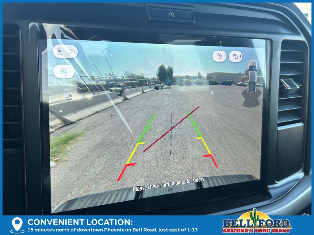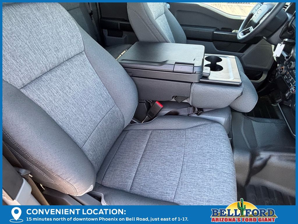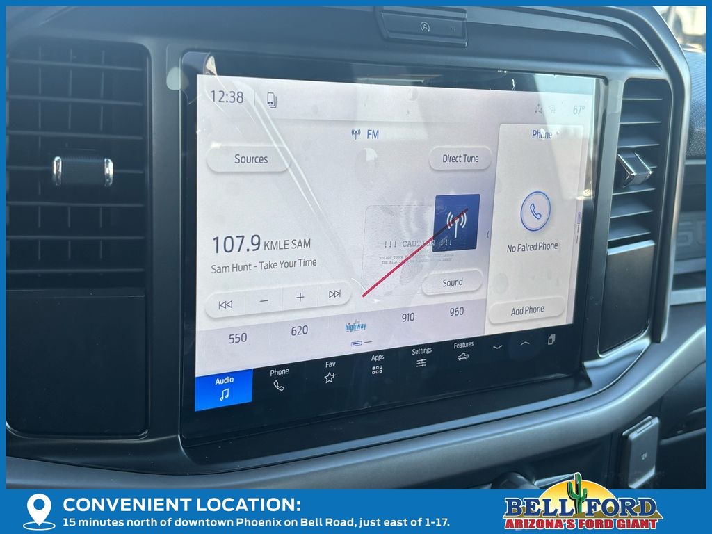 This Ford F-150 is equipped with the following options: Equipment Group 103A High (3.55 Axle Ratio, Chrome Bumpers, Cloth 40/20/40 Front Seat, Interior Work Surfaces, LED Fog Lamps, Radio: AM/FM Stereo with SiriusXM 360L, Rear Window Fixed Privacy Glass with Defroster, SYNC 4 with Enhanced Voice Recognition, and Wheels: 17" Silver Painted Aluminum), Ford Connectivity Package (1-Year Included), GVWR: 6,365 lbs Payload Package, Internet access capable: 5G Modem - Ford Connectivity Package, 4-Wheel Disc Brakes, 6 Speakers, ABS brakes, Air Conditioning, AM/FM radio: SiriusXM with 360L, Auto High-beam Headlights, Brake assist, Compass, Delay-off headlights, Driver door bin, Dual front impact airbags, Dual front side impact airbags, Electronic Stability Control, Emergency communication system: SYNC 4 911 Assist, Front anti-roll bar, Front Center Armrest, Front reading lights, Front wheel independent suspension, Fully automatic headlights, Heated door mirrors, Illuminated entry, Low tire pressure warning, Occupant sensing airbag, Outside temperature display, Overhead airbag, Overhead console, Panic alarm, Passenger door bin, Passenger vanity mirror, Power door mirrors, Power steering, Power windows, Radio data system, Rear Parking Sensors, Rear step bumper, Remote keyless entry, Security system, Speed control, Split folding rear seat, Steering wheel mounted audio controls, Tachometer, Telescoping steering wheel, Tilt steering wheel, Traction control, Trip computer, Variably intermittent wipers, and Wheels: 17" Silver Steel.