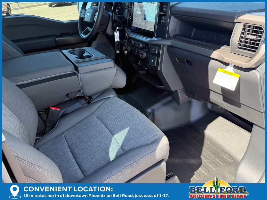 This Ford F-150 is equipped with the following options: Equipment Group 101A Standard (3.55 Axle Ratio, Cloth 40/20/40 Front Seat, Radio: AM/FM Stereo with SiriusXM 360L, SYNC 4 with Enhanced Voice Recognition, and Wheels: 17" Silver Steel), Ford Connectivity Package (1-Year Included), GVWR: 6,365 lbs Payload Package, Internet access capable: 5G Modem - Ford Connectivity Package, 4-Wheel Disc Brakes, 6 Speakers, ABS brakes, Air Conditioning, AM/FM radio: SiriusXM with 360L, Auto High-beam Headlights, Brake assist, Compass, Delay-off headlights, Driver door bin, Dual front impact airbags, Dual front side impact airbags, Electronic Stability Control, Emergency communication system: SYNC 4 911 Assist, Front anti-roll bar, Front Center Armrest, Front reading lights, Front wheel independent suspension, Fully automatic headlights, Heated door mirrors, Illuminated entry, Low tire pressure warning, Occupant sensing airbag, Outside temperature display, Overhead airbag, Overhead console, Panic alarm, Passenger door bin, Passenger vanity mirror, Power door mirrors, Power steering, Power windows, Radio data system, Rear step bumper, Remote keyless entry, Security system, Speed control, Split folding rear seat, Steering wheel mounted audio controls, Tachometer, Telescoping steering wheel, Tilt steering wheel, Traction control, Trip computer, and Variably intermittent wipers. Price includes: $500 - Retail Customer Cash. Exp. 04/30/2026