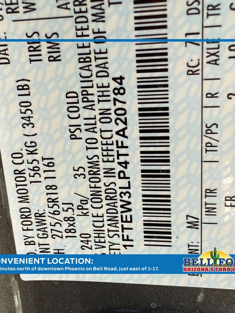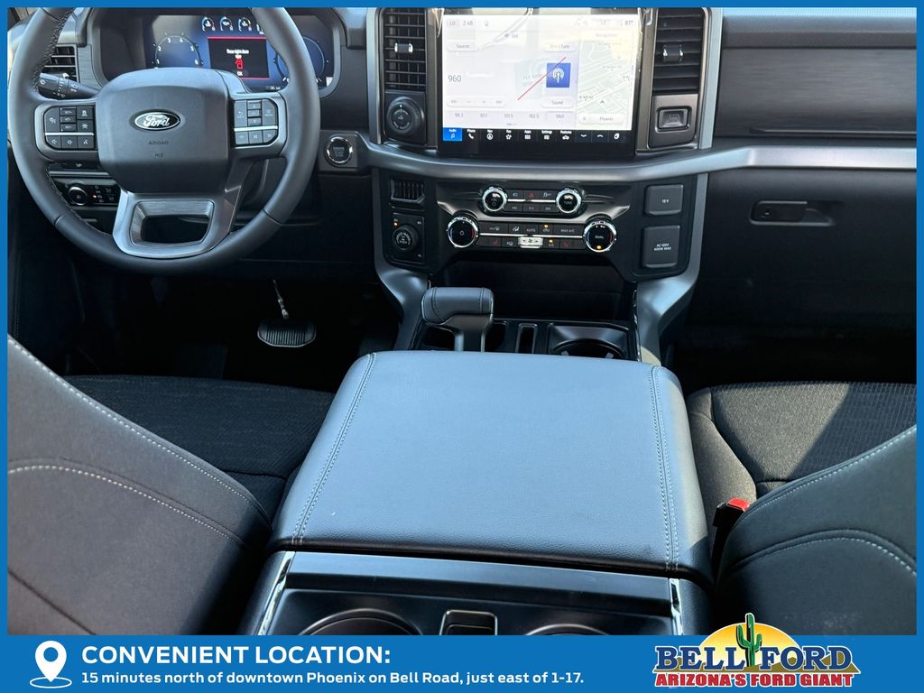 This Ford F-150 is equipped with the following options: Equipment Group 302A Mid (18" Painted Aluminum Wheels, 360 Degree Camera, 400W Pro Power Onboard (cab & Bed), Adaptive Cruise Control with Stop and Go, AEB Oncoming, Auto-Dimming Rear-View Mirror, Body-Color Door Handles, Chrome Front and Rear Bumpers, Cloth 40/20/40 Front Seat, Dual-Zone Electronic Automatic Temperature Control, Ford Co-Pilot360 Assist 2.0, Front Parking Sensors, Heated Front Seats, Intelligent Access with Push Button Start, Power Glass Heated Sideview Mirrors, Power-Sliding Rear Window, Radio: AM/FM Stereo with SiriusXM 360L, Remote Start System with Remote Tailgate Release, SYNC 4 with Enhanced Voice Recognition, Towing Technology, and Wrapped Steering Wheel), Ford Connectivity Package (1-Year Included), GVWR: 6,650 lbs Payload Package, Internet access capable: 5G Modem - Ford Connectivity Package, XLT Black Appearance Package (6" Black Running Boards, Black Exterior Badging, Black Grille, Body-Color Front and Rear Bumpers, Dark Interior Appliques, Floor Shifter, Gray Box Side Decal, Unique Sport Cloth 40/Console/40 Front-Seats, and Wheels: 18" Gloss Black), 4WD, 4-Wheel Disc Brakes, 6 Speakers, ABS brakes, Air Conditioning, Alloy wheels, AM/FM radio: SiriusXM with 360L, Auto High-beam Headlights, Brake assist, Bumpers: body-color, Compass, Delay-off headlights, Driver door bin, Driver vanity mirror, Dual front impact airbags, Dual front side impact airbags, Electronic Stability Control, Emergency communication system: SYNC 4 911 Assist, Front anti-roll bar, Front Center Armrest, Front fog lights, Front reading lights, Front wheel independent suspension, Fully automatic headlights, Heated door mirrors, Illuminated entry, Low tire pressure warning, Occupant sensing airbag, Outside temperature display, Overhead airbag, Overhead console, Panic alarm, Passenger door bin, Passenger vanity mirror, Power door mirrors, Power steering, Power windows, Radio data system, Rear Parking Sensors, Rear reading lights, Rear step bumper, Rear window defroster, Remote keyless entry, Security system, Speed control, Split folding rear seat, Steering wheel mounted audio controls, Tachometer, Telescoping steering wheel, Tilt steering wheel, Traction control, Trip computer, and Variably intermittent wipers.