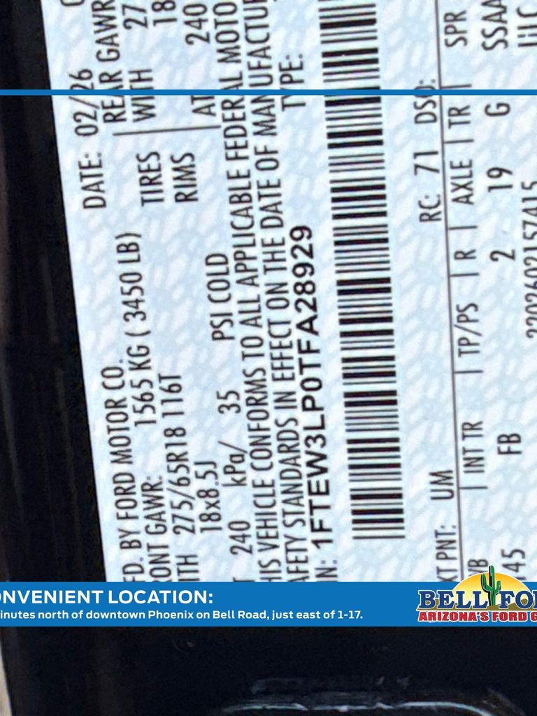 - VIN : 1FTEW3LP0TFA28929