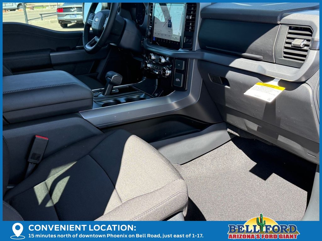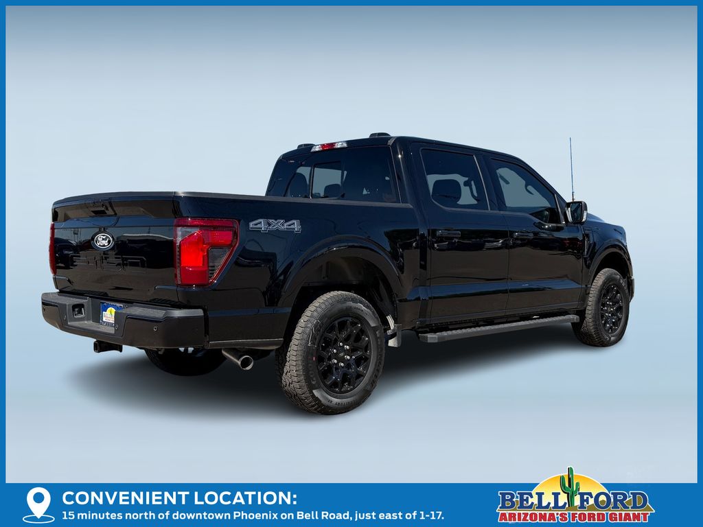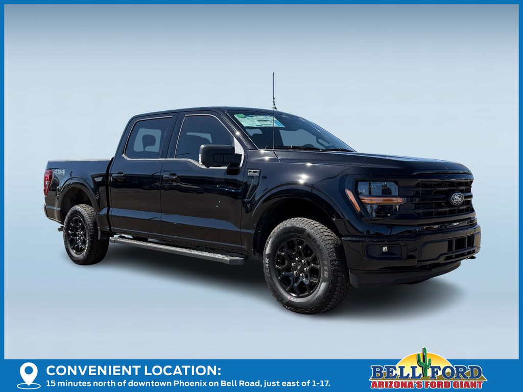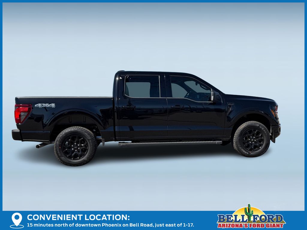 This Ford F-150 is equipped with the following options: Equipment Group 302A Mid (18" Painted Aluminum Wheels, 3.55 Axle Ratio, 360 Degree Camera, 400W Pro Power Onboard (cab & Bed), Adaptive Cruise Control with Stop and Go, Auto-Dimming Rear-View Mirror, Body-Color Door Handles, Chrome Front and Rear Bumpers, Cloth 40/20/40 Front Seat, Dual-Zone Electronic Automatic Temperature Control, Ford Co-Pilot360 Assist 2.0, Front Parking Sensors, Heated Front Seats, Intelligent Access with Push Button Start, Power Glass Heated Sideview Mirrors, Power-Sliding Rear Window, Radio: AM/FM Stereo with SiriusXM 360L, Remote Start System with Remote Tailgate Release, SYNC 4 with Enhanced Voice Recognition, Towing Technology, and Wrapped Steering Wheel), Ford Connectivity Package (1-Year Included), GVWR: 6,650 lbs Payload Package, Internet access capable: 5G Modem - Ford Connectivity Package, XLT Black Appearance Package (6" Black Running Boards, Black Exterior Badging, Black Grille, Body-Color Front and Rear Bumpers, Dark Interior Appliques, Gray Box Side Decal, Unique Sport Cloth 40/Console/40 Front-Seats, and Wheels: 18" Gloss Black), 4WD, 4-Wheel Disc Brakes, 7 Speakers, ABS brakes, Air Conditioning, Alloy wheels, AM/FM radio: SiriusXM with 360L, Auto High-beam Headlights, Brake assist, Bumpers: body-color, Compass, Delay-off headlights, Driver door bin, Driver vanity mirror, Dual front impact airbags, Dual front side impact airbags, Electronic Stability Control, Emergency communication system: SYNC 4 911 Assist, Front anti-roll bar, Front Center Armrest, Front fog lights, Front reading lights, Front wheel independent suspension, Fully automatic headlights, Heated door mirrors, Illuminated entry, Low tire pressure warning, Occupant sensing airbag, Outside temperature display, Overhead airbag, Overhead console, Panic alarm, Passenger door bin, Passenger vanity mirror, Power door mirrors, Power steering, Power windows, Radio data system, Rear reading lights, Rear step bumper, Rear window defroster, Remote keyless entry, Security system, Speed control, Split folding rear seat, Steering wheel mounted audio controls, Tachometer, Telescoping steering wheel, Tilt steering wheel, Traction control, Trip computer, and Variably intermittent wipers. Price includes: $2500 - Retail Customer Cash. Exp. 04/30/2026