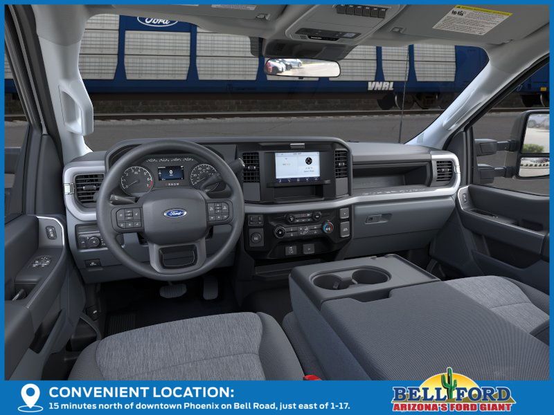 This Ford F-250SD is equipped with the following options: Ford Connectivity Package (1-Year Included), GVWR: 10,000 lb Payload Package, Internet access capable: 5G Modem - Ford Connectivity Package, Order Code 600A, XL Chrome Package (Bright Chrome Hub Covers & Center Ornaments, Chrome Front Bumper, Chrome Rear Step Bumper, and Halogen Fog Lamps), 17" Argent Painted Steel Wheels, 250 Amp Alternator (Gas), 3.73 Axle Ratio, 4 Speakers, 4-Wheel Disc Brakes, 400W Pro Power Onboard, ABS brakes, Air Conditioning, AM/FM radio, AM/FM Stereo w/MP3 Player, Brake assist, Cloth 40/20/40 Split Bench Seat, Compass, Delay-off headlights, Dual front impact airbags, Dual front side impact airbags, Electronic Stability Control, Emergency communication system: SYNC 4 911 Assist, Exterior Parking Camera Rear, Front anti-roll bar, Front Center Armrest w/Storage, Front reading lights, Front wheel independent suspension, Fully automatic headlights, HD Vinyl 40/20/40 Split Bench Seat, Heated door mirrors, Illuminated entry, Low tire pressure warning, Outside temperature display, Overhead airbag, Overhead console, Panic alarm, Passenger cancellable airbag, Passenger vanity mirror, Platform Running Boards, Power door mirrors, Power steering, Power windows, Rear step bumper, Remote keyless entry, Security system, Speed control, Steering wheel mounted audio controls, SYNC 4, Tachometer, Telescoping steering wheel, Tilt steering wheel, Traction control, Trailer Brake Controller, Trip computer, Turn signal indicator mirrors, Upfitter Switches (6), and Variably intermittent wipers. Price includes: $1500 - Retail Customer Cash. Exp. 01/05/2026
