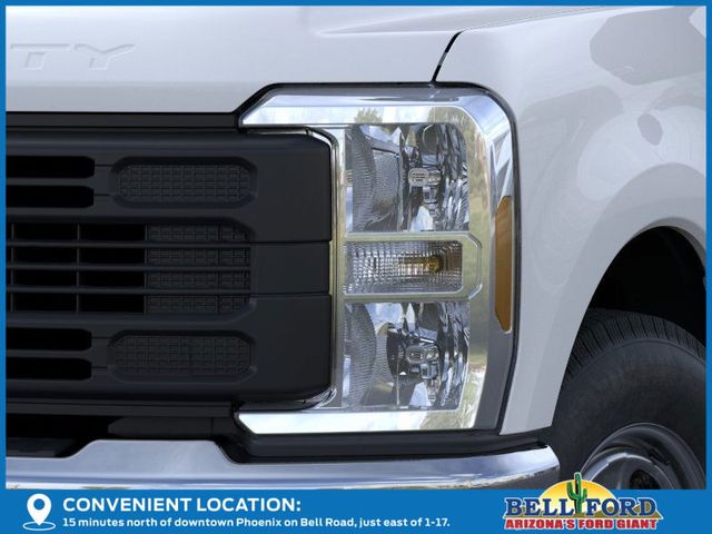 Ford Connectivity Package (1-Year Included), GVWR: 10,000 lb Payload Package, Internet access capable: 5G Modem - Ford Connectivity Package, Order Code 600A, XL Chrome Package, 17" Argent Painted Steel Wheels, 250 Amp Alternator (Gas), 3.73 Axle Ratio, 4-Wheel Disc Brakes, 400W Pro Power Onboard, 6 Speakers, ABS brakes, Air Conditioning, AM/FM radio, AM/FM Stereo w/MP3 Player, Brake assist, Compass, Delay-off headlights, Dual front impact airbags, Dual front side impact airbags, Electronic Stability Control, Emergency communication system: SYNC 4 911 Assist, Exterior Parking Camera Rear, Front anti-roll bar, Front Center Armrest w/Storage, Front reading lights, Front wheel independent suspension, Fully automatic headlights, HD Vinyl 40/20/40 Split Bench Seat, Heated door mirrors, Illuminated entry, Low tire pressure warning, Outside temperature display, Overhead airbag, Overhead console, Panic alarm, Passenger cancellable airbag, Passenger vanity mirror, Platform Running Boards, Power door mirrors, Power steering, Power windows, Rear step bumper, Remote keyless entry, Security system, Speed control, Split folding rear seat, Steering wheel mounted audio controls, SYNC 4, Tachometer, Telescoping steering wheel, Tilt steering wheel, Tough Bed Spray-In Bedliner, Traction control, Trailer Brake Controller, Trip computer, Turn signal indicator mirrors, Upfitter Switches (6), and Variably intermittent wipers.