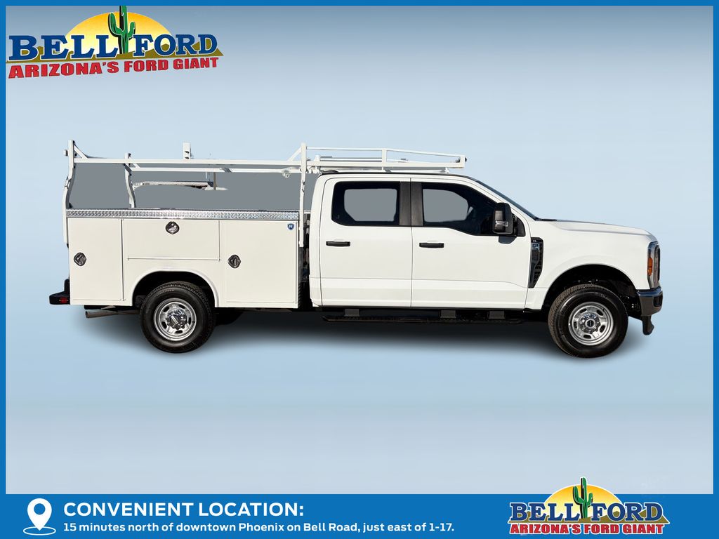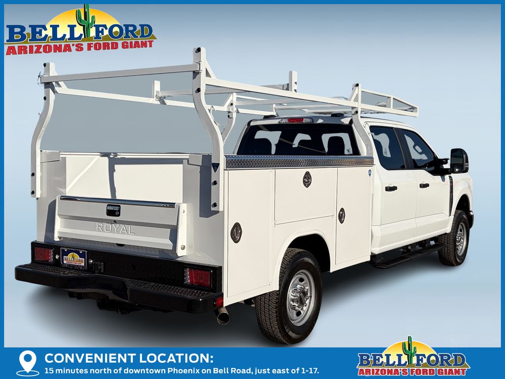 This Ford F-250SD is equipped with the following options: Ford Connectivity Package (1-Year Included), GVWR: 10,000 lb Payload Package, Internet access capable: 5G Modem - Ford Connectivity Package, Order Code 600A, XL Chrome Package (Bright Chrome Hub Covers & Center Ornaments, Chrome Front Bumper, Chrome Rear Step Bumper, and Halogen Fog Lamps), 4WD, 17" Argent Painted Steel Wheels, 190 Amp Alternator, 4-Wheel Disc Brakes, 6 Speakers, ABS brakes, Air Conditioning, AM/FM radio, AM/FM Stereo w/MP3 Player, Brake assist, Compass, Delay-off headlights, Dual front impact airbags, Dual front side impact airbags, Electronic Stability Control, Emergency communication system: SYNC 4 911 Assist, Exterior Parking Camera Rear, Front anti-roll bar, Front Center Armrest w/Storage, Front License Plate Bracket, Front reading lights, Fully automatic headlights, HD Vinyl 40/20/40 Split Bench Seat, Heated door mirrors, Illuminated entry, Low tire pressure warning, Outside temperature display, Overhead airbag, Overhead console, Panic alarm, Passenger vanity mirror, Platform Running Boards, Power door mirrors, Power steering, Power windows, Rear reading lights, Rear step bumper, Remote keyless entry, Security system, Speed control, Split folding rear seat, Steering wheel mounted audio controls, SYNC 4, Tachometer, Telescoping steering wheel, Tilt steering wheel, Traction control, Trailer Brake Controller, Trip computer, Turn signal indicator mirrors, Upfitter Switches (6), Variably intermittent wipers, and Vehicle Integration System 2.0.