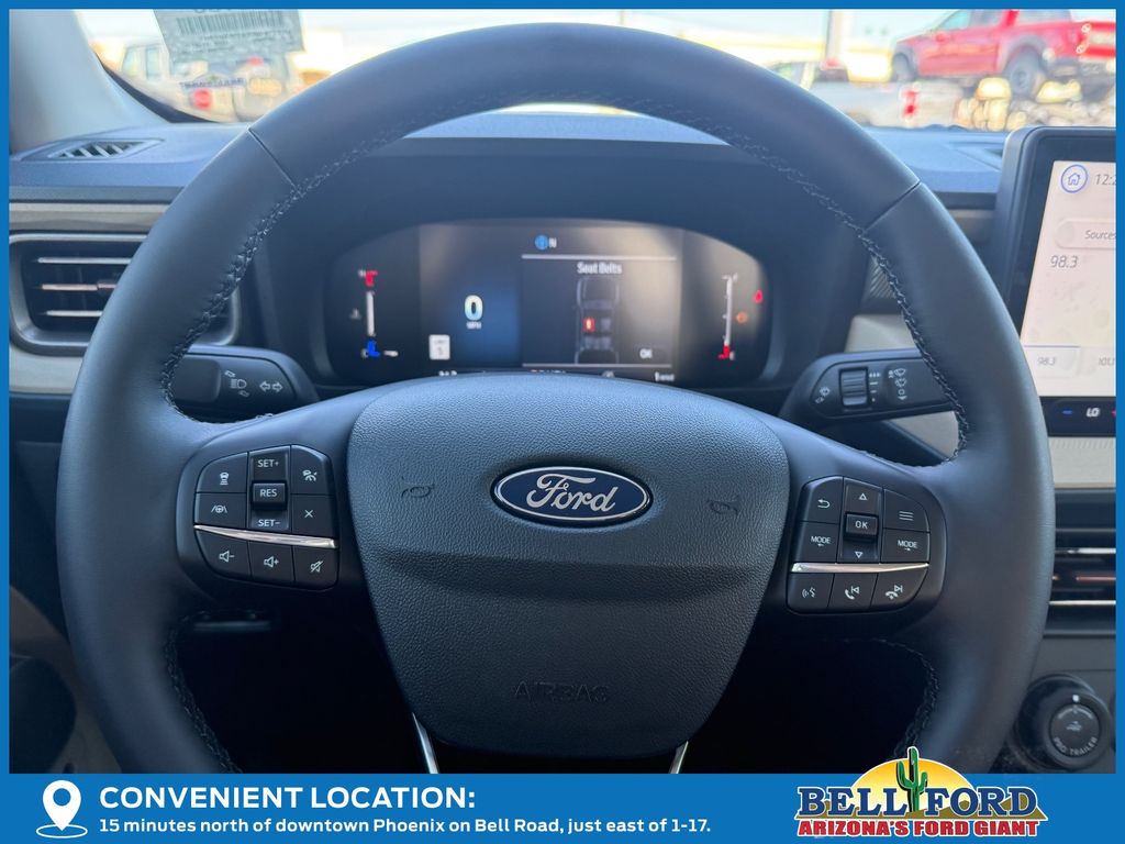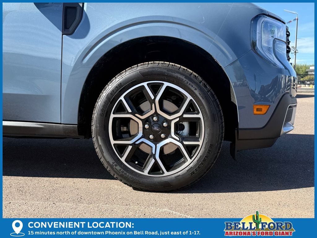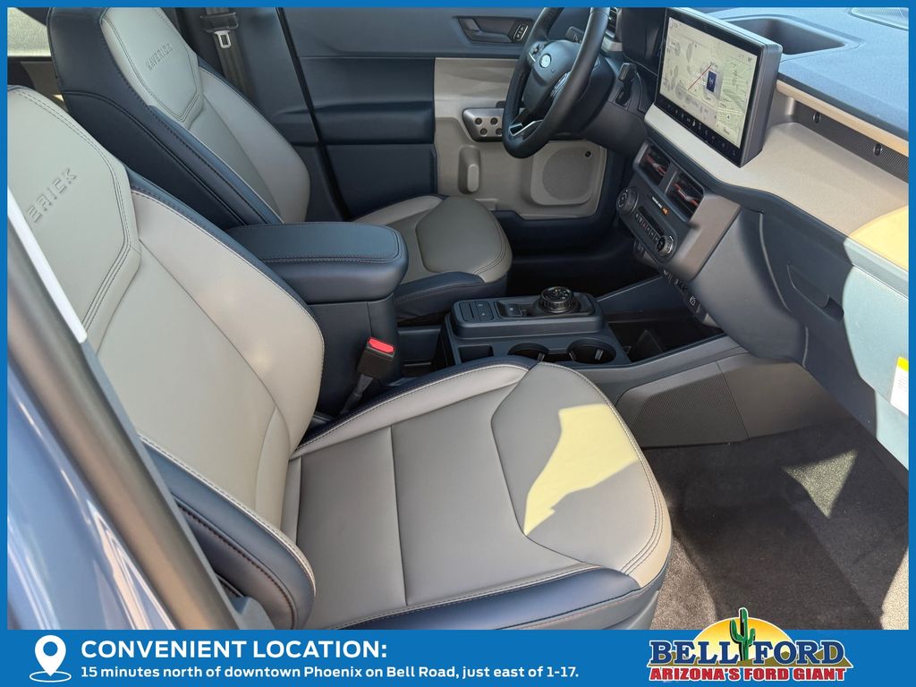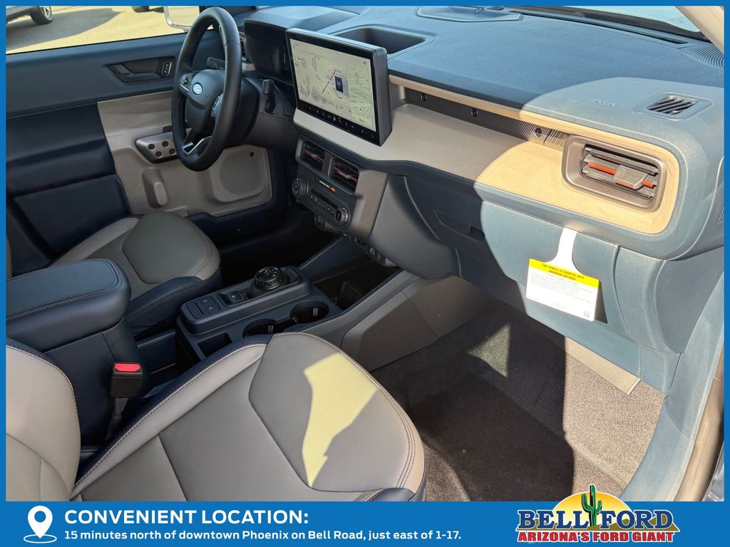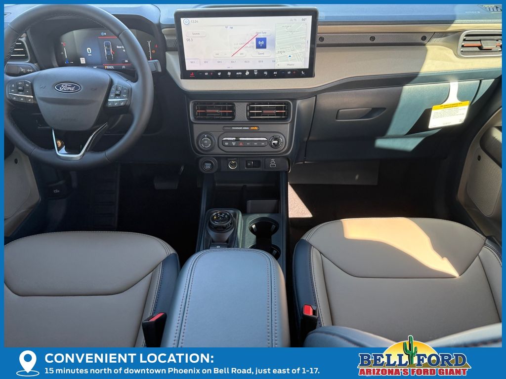 This Ford Maverick is equipped with the following options: 4K Tow Package (Trailer Brake Controller, Trailer Hitch (class III) 2" Receiver, and Upgraded Cooling Fan), Equipment Group 502A (ActiveX Trimmed Heated Front Bucket Seats, Radio: B&O Sound System by Bang and Olufsen, SiriusXM with 360L, SYNC 4 with Enhanced Voice Recognition, and Wheels: 19" Machined Aluminum Painted), Ford Connectivity Package (1-Year Included), Internet access capable: 5G Modem - Ford Connectivity Package, 2.91 Axle Ratio, 4-Wheel Disc Brakes, 8 Speakers, ABS brakes, Air Conditioning, Alloy wheels, AM/FM radio: SiriusXM with 360L, Apple CarPlay/Android Auto, Auto High-beam Headlights, Automatic temperature control, Brake assist, Bumpers: body-color, Compass, Delay-off headlights, Driver door bin, Driver vanity mirror, Dual front impact airbags, Dual front side impact airbags, Electronic Stability Control, Emergency communication system: SYNC 4 911 Assist, Exterior Parking Camera Rear, Four wheel independent suspension, Front anti-roll bar, Front Bucket Seats, Front Center Armrest, Front dual zone A/C, Front reading lights, Fully automatic headlights, Heated door mirrors, Heated front seats, Heated steering wheel, Illuminated entry, Knee airbag, Low tire pressure warning, Navigation system: Connected Navigation, Occupant sensing airbag, Outside temperature display, Overhead airbag, Overhead console, Panic alarm, Passenger door bin, Passenger vanity mirror, Power door mirrors, Power driver seat, Power steering, Power windows, Power-Sliding Rear Window, Radio data system, Rear anti-roll bar, Rear seat center armrest, Rear step bumper, Remote keyless entry, Security system, Speed control, Speed-sensing steering, Steering wheel mounted audio controls, Telescoping steering wheel, Tilt steering wheel, Traction control, and Trip computer.