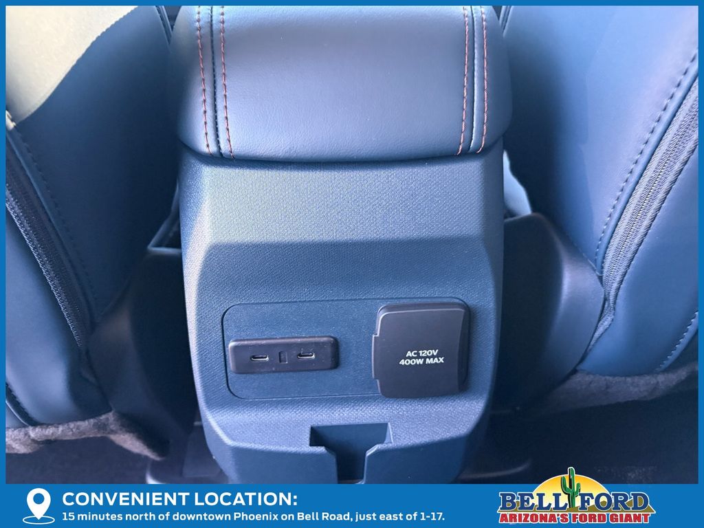 This Ford Maverick is equipped with the following options: 4K Tow Package (Trailer Brake Controller, Trailer Hitch (class III) 2" Receiver, and Upgraded Cooling Fan), Equipment Group 502A (ActiveX Trimmed Heated Front Bucket Seats, Radio: B&O Sound System by Bang and Olufsen, SiriusXM with 360L, SYNC 4 with Enhanced Voice Recognition, and Wheels: 19" Machined Aluminum Painted), Ford Connectivity Package (1-Year Included), Internet access capable: 5G Modem - Ford Connectivity Package, 2.91 Axle Ratio, 4-Wheel Disc Brakes, 8 Speakers, ABS brakes, Air Conditioning, Alloy wheels, AM/FM radio: SiriusXM with 360L, Apple CarPlay/Android Auto, Auto High-beam Headlights, Automatic temperature control, Brake assist, Bumpers: body-color, Compass, Delay-off headlights, Driver door bin, Driver vanity mirror, Dual front impact airbags, Dual front side impact airbags, Electronic Stability Control, Emergency communication system: SYNC 4 911 Assist, Exterior Parking Camera Rear, Four wheel independent suspension, Front anti-roll bar, Front Bucket Seats, Front Center Armrest, Front dual zone A/C, Front reading lights, Fully automatic headlights, Heated door mirrors, Heated front seats, Heated steering wheel, Illuminated entry, Knee airbag, Low tire pressure warning, Navigation system: Connected Navigation, Occupant sensing airbag, Outside temperature display, Overhead airbag, Overhead console, Panic alarm, Passenger door bin, Passenger vanity mirror, Power door mirrors, Power driver seat, Power steering, Power windows, Power-Sliding Rear Window, Radio data system, Rear anti-roll bar, Rear seat center armrest, Rear step bumper, Remote keyless entry, Security system, Speed control, Speed-sensing steering, Steering wheel mounted audio controls, Telescoping steering wheel, Tilt steering wheel, Traction control, and Trip computer.