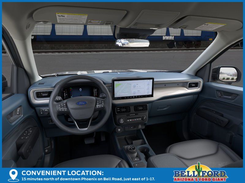 This Ford Maverick is equipped with the following options: 4K Tow Package (Trailer Brake Controller, Trailer Hitch (class III) 2" Receiver, and Upgraded Cooling Fan), Black Appearance Package (Black Grille, Black Interior Accents, and Wheels: 19" Black Painted Aluminum), Equipment Group 501A (2.91 Axle Ratio, ActiveX Trimmed Heated Front Bucket Seats, Radio: B&O Sound System by Bang and Olufsen, SiriusXM with 360L, SYNC 4 with Enhanced Voice Recognition, and Wheels: 19" Machined Aluminum Painted), Ford Connectivity Package (1-Year Included), Internet access capable: 5G Modem - Ford Connectivity Package, 2.5L I-4 Hybrid, 4-Wheel Disc Brakes, 8 Speakers, ABS brakes, Air Conditioning, Alloy wheels, AM/FM radio: SiriusXM with 360L, Apple CarPlay/Android Auto, Auto High-beam Headlights, Automatic temperature control, Brake assist, Bumpers: body-color, Compass, Delay-off headlights, Driver door bin, Driver vanity mirror, Dual front impact airbags, Dual front side impact airbags, Electronic Stability Control, Emergency communication system: SYNC 4 911 Assist, Exterior Parking Camera Rear, Four wheel independent suspension, Front anti-roll bar, Front Bucket Seats, Front Center Armrest, Front dual zone A/C, Front reading lights, Fully automatic headlights, Heated door mirrors, Heated front seats, Heated steering wheel, Illuminated entry, Knee airbag, Low tire pressure warning, Navigation system: Connected Navigation, Occupant sensing airbag, Outside temperature display, Overhead airbag, Overhead console, Panic alarm, Passenger door bin, Passenger vanity mirror, Power door mirrors, Power driver seat, Power steering, Power windows, Power-Sliding Rear Window, Radio data system, Rear anti-roll bar, Rear seat center armrest, Rear step bumper, Remote keyless entry, Security system, Speed control, Speed-sensing steering, Steering wheel mounted audio controls, Telescoping steering wheel, Tilt steering wheel, Traction control, and Trip computer.