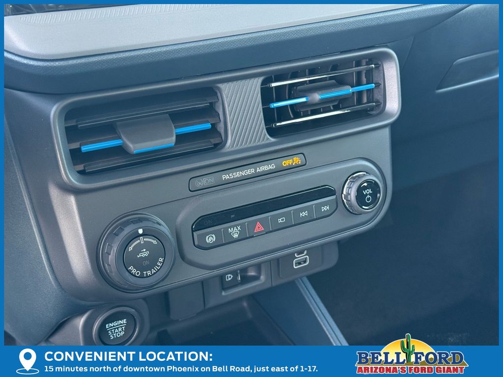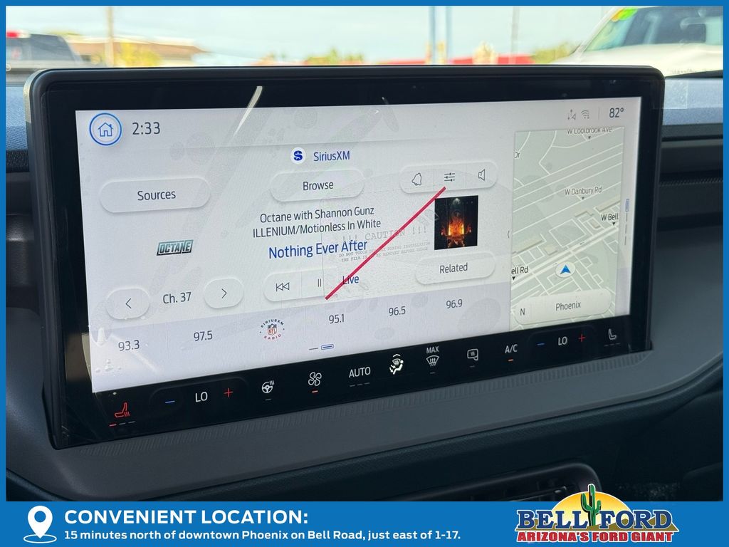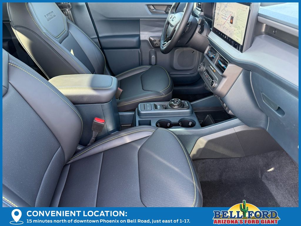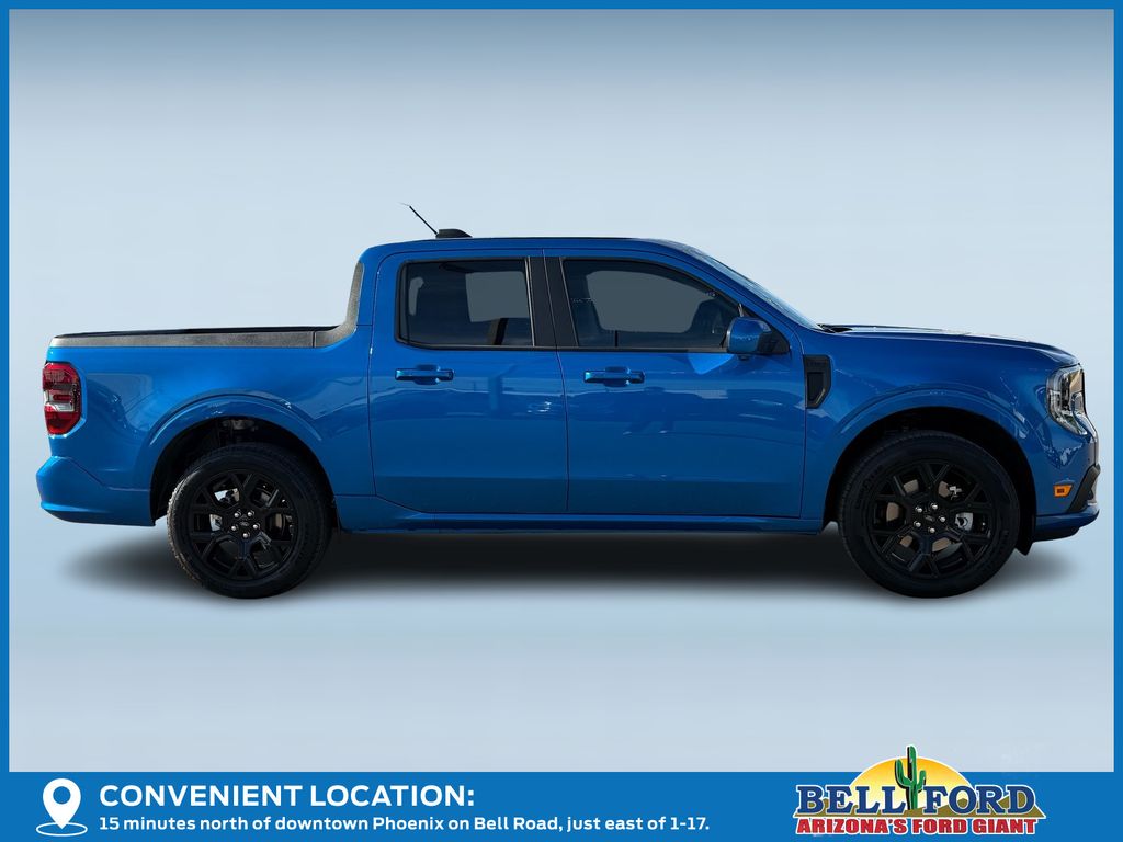This Ford Maverick is equipped with the following options: Equipment Group 702A High (3.63 Axle Ratio, 360-Degree Camera, Acoustic Windshield, ActiveX Trimmed Front Bucket Seats, Adaptive Cruise Control (ACC) with Stop and Go, Ambient Lighting and LED Box Lighting, Auto High Beams, Bed Tie Down Locking Rails with 2 Locking Brackets, Blind Spot Assist, Driver/Passenger Illuminated Visors, Dual-Zone Electronic Automatic Temperature Control, Electric Sound Enhancement, Ford Co-Pilot Assist 2.0, Front and Rear All-Weather Floor Liners, Front Parking Sensors, Heated Mirrors, Heated Seats, Heated Steering Wheel, Intersection Assist, Lane-Keeping System, Post-Collision Braking, Power Moonroof, Power-Sliding Rear Window, Predictive Speed Assist, Pro Power Onboard - 400W, Pro Trailer Backup Assist, Pro Trailer Hitch Assist, Radio: B&O Sound System by Bang and Olufsen, Rear Parking Sensor, Reverse Brake Assist, SiriusXM with 360L, SYNC 4 with Enhanced Voice Recognition, Tough Bed Spray-in Bedliner, and Wheels: 19" Turbofan-Stuled Black Painted Aluminum), Ford Connectivity Package (1-Year Included), Internet access capable: 5G Modem - Ford Connectivity Package, 4-Wheel Disc Brakes, 8 Speakers, ABS brakes, Air Conditioning, Alloy wheels, AM/FM radio: SiriusXM with 360L, Apple CarPlay/Android Auto, Auto High-beam Headlights, Automatic temperature control, Brake assist, Bumpers: body-color, Compass, Delay-off headlights, Driver door bin, Driver vanity mirror, Dual front impact airbags, Dual front side impact airbags, Electronic Stability Control, Emergency communication system: SYNC 4 911 Assist, Exterior Parking Camera Rear, Four wheel independent suspension, Front anti-roll bar, Front Bucket Seats, Front Center Armrest, Front dual zone A/C, Front fog lights, Front reading lights, Fully automatic headlights, Heated door mirrors, Heated front seats, Heated steering wheel, Illuminated entry, Knee airbag, Low tire pressure warning, Navigation system: Connected Navigation, Occupant sensing airbag, Outside temperature display, Overhead airbag, Overhead console, Panic alarm, Passenger door bin, Passenger vanity mirror, Power door mirrors, Power driver seat, Power moonroof, Power steering, Power windows, Radio data system, Rear anti-roll bar, Rear seat center armrest, Rear step bumper, Remote keyless entry, Security system, Speed control, Speed-sensing steering, Steering wheel mounted audio controls, Tachometer, Telescoping steering wheel, Tilt steering wheel, Traction control, Trip computer, and Wheels: 19" Black Painted Aluminum. Price includes: $500 - Retail Customer Cash. Exp. 03/31/2026