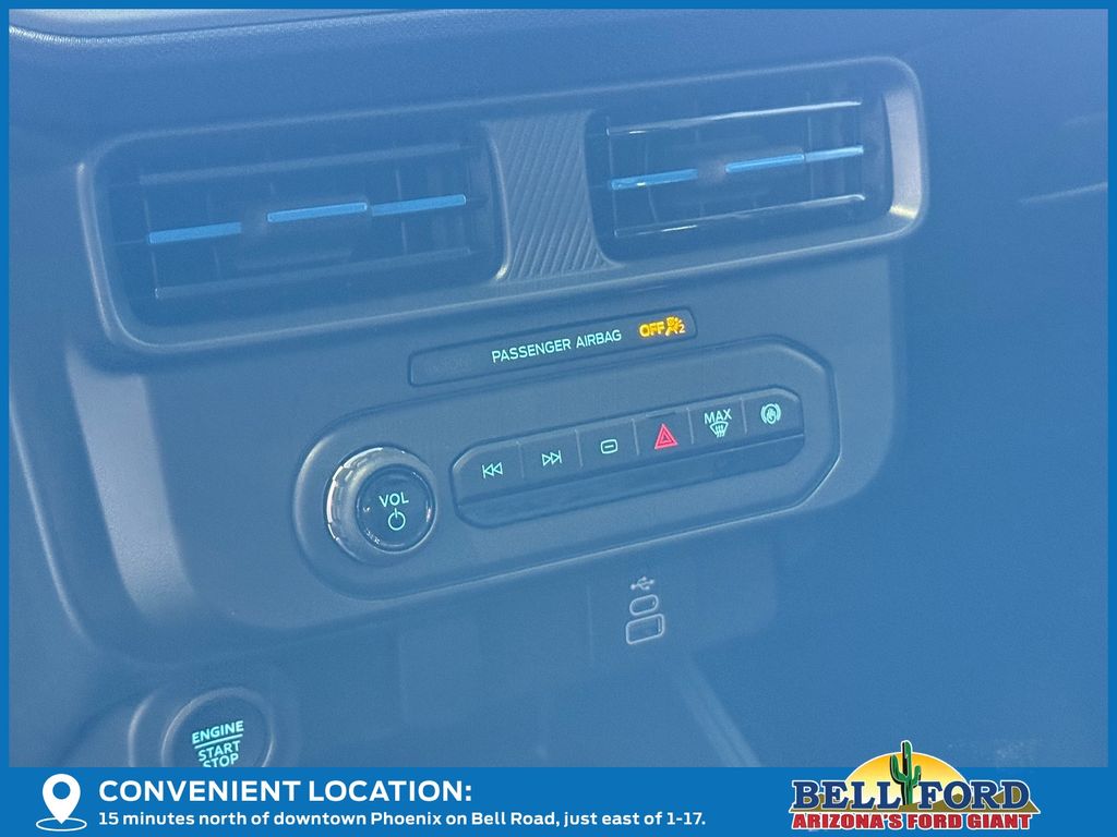 This Ford Maverick is equipped with the following options: Equipment Group 402A Standard (3.63 Axle Ratio, ActiveX Trimmed Front Bucket Seats, Radio: AM/FM Stereo with 6 Speakers, SiriusXM with 360L, SYNC 4 with Enhanced Voice Recognition, and Wheels: 19" Turbofan-Stuled Black Painted Aluminum), Ford Connectivity Package (1-Year Included), Internet access capable: 5G Modem - Ford Connectivity Package, 4-Wheel Disc Brakes, 6 Speakers, ABS brakes, Air Conditioning, Alloy wheels, AM/FM radio: SiriusXM with 360L, Apple CarPlay/Android Auto, Auto High-beam Headlights, Automatic temperature control, Brake assist, Bumpers: body-color, Compass, Delay-off headlights, Driver door bin, Driver vanity mirror, Dual front impact airbags, Dual front side impact airbags, Electronic Stability Control, Emergency communication system: SYNC 4 911 Assist, Exterior Parking Camera Rear, Four wheel independent suspension, Front anti-roll bar, Front Bucket Seats, Front Center Armrest, Front fog lights, Front reading lights, Fully automatic headlights, Illuminated entry, Knee airbag, Low tire pressure warning, Occupant sensing airbag, Outside temperature display, Overhead airbag, Overhead console, Panic alarm, Passenger door bin, Passenger vanity mirror, Power door mirrors, Power driver seat, Power steering, Power windows, Radio data system, Rear anti-roll bar, Rear Parking Sensors, Rear seat center armrest, Rear step bumper, Remote keyless entry, Security system, Speed control, Speed-sensing steering, Steering wheel mounted audio controls, Tachometer, Telescoping steering wheel, Tilt steering wheel, Traction control, Trip computer, and Wheels: 19" Black Painted Aluminum. Price includes: $500 - Retail Customer Cash. Exp. 03/31/2026