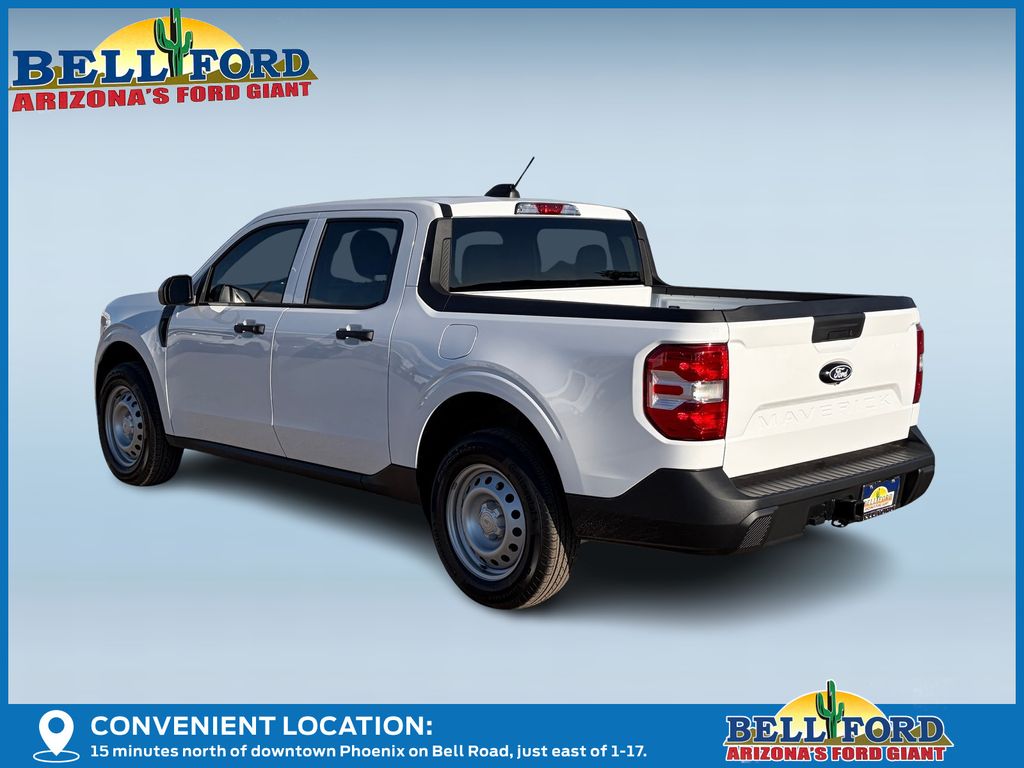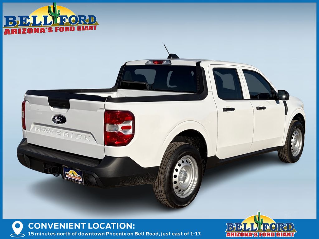This Ford Maverick is equipped with the following options: Equipment Group 101A (2.91 Axle Ratio, Front Cloth Bucket Seats, Radio: AM/FM Stereo with 6 Speakers, SiriusXM with 360L, and SYNC 4 with Enhanced Voice Recognition), Ford Connectivity Package (1-Year Included), Internet access capable: 5G Modem - Ford Connectivity Package, 2.5L I-4 Hybrid, 2K Trailer Hitch Receiver with 4-Pin Connector, 4-Wheel Disc Brakes, 6 Speakers, ABS brakes, Air Conditioning, AM/FM radio: SiriusXM with 360L, Apple CarPlay/Android Auto, Auto High Beams, Auto High-beam Headlights, Automatic temperature control, Brake assist, Bumpers: body-color, Compass, Delay-off headlights, Driver door bin, Driver vanity mirror, Dual front impact airbags, Dual front side impact airbags, Electronic Stability Control, Emergency communication system: SYNC 4 911 Assist, Exterior Parking Camera Rear, Four wheel independent suspension, Front anti-roll bar, Front Bucket Seats, Front Center Armrest, Front reading lights, Fully automatic headlights, Illuminated entry, Intersection Assist, Knee airbag, Lane-Keeping System, Low tire pressure warning, Occupant sensing airbag, Outside temperature display, Overhead airbag, Overhead console, Panic alarm, Passenger door bin, Passenger vanity mirror, Power steering, Power windows, Pre-Collision Assist with Automatic Emergency Braking, Radio data system, Rear anti-roll bar, Rear step bumper, Rear-View Camera, Remote keyless entry, Speed control, Speed-sensing steering, Steering wheel mounted audio controls, Telescoping steering wheel, Tilt steering wheel, Traction control, Trip computer, and Wheels: 17" Steel with Sparkle Silver Painted Cover.