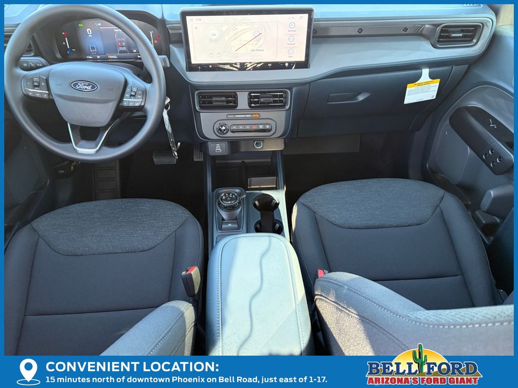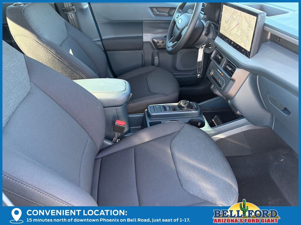 This Ford Maverick is equipped with the following options: Equipment Group 101A, Ford Connectivity Package (1-Year Included), Internet access capable: 5G Modem - Ford Connectivity Package, 2.5L I-4 Hybrid, 2.91 Axle Ratio, 2K Trailer Hitch Receiver w/4-Pin Connector, 4-Wheel Disc Brakes, 6 Speakers, ABS brakes, Air Conditioning, AM/FM radio: SiriusXM with 360L, Apple CarPlay/Android Auto, Auto High Beams, Auto High-beam Headlights, Automatic temperature control, Brake assist, Bumpers: body-color, Compass, Delay-off headlights, Driver door bin, Driver vanity mirror, Dual front impact airbags, Dual front side impact airbags, Electronic Stability Control, Emergency communication system: SYNC 4 911 Assist, Exterior Parking Camera Rear, Four wheel independent suspension, Front anti-roll bar, Front Bucket Seats, Front Center Armrest, Front Cloth Bucket Seats, Front reading lights, Fully automatic headlights, Illuminated entry, Intersection Assist, Knee airbag, Lane-Keeping System, Low tire pressure warning, Occupant sensing airbag, Outside temperature display, Overhead airbag, Overhead console, Panic alarm, Passenger door bin, Passenger vanity mirror, Power steering, Power windows, Pre-Collision Assist w/Automatic Emergency Braking, Radio data system, Radio: AM/FM Stereo w/6 Speakers, Rear anti-roll bar, Rear step bumper, Rear-View Camera, Remote keyless entry, SiriusXM w/360L, Speed control, Speed-sensing steering, Steering wheel mounted audio controls, SYNC 4 w/Enhanced Voice Recognition, Telescoping steering wheel, Tilt steering wheel, Traction control, Trip computer, and Wheels: 17" Steel w/Sparkle Silver Painted Cover.