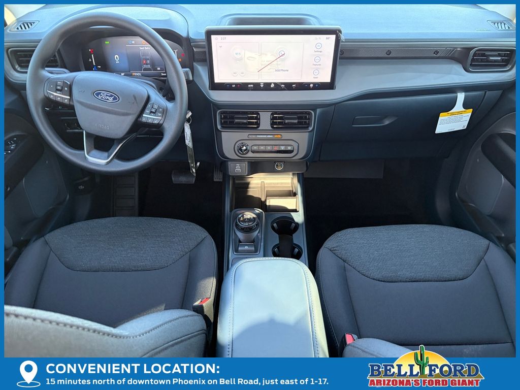 This Ford Maverick is equipped with the following options: 4K Tow Package (Trailer Brake Controller, Trailer Hitch (class III) 2" Receiver, and Upgraded Cooling Fan), Equipment Group 101A (2.91 Axle Ratio, Front Cloth Bucket Seats, Radio: AM/FM Stereo with 6 Speakers, SiriusXM with 360L, and SYNC 4 with Enhanced Voice Recognition), Ford Co-Pilot360 (Auto High Beams, BLIS with Cross-Traffic Alert and Trailer Coverage, Exit Warning, Intersection Assist, Lane-Keeping System, Power Glass Manual-Folding Mirrors, Pre-Collision Assist with Automatic Emergency Braking, Rear Cross Traffic Braking, Rear Parking Sensors, and Rear-View Camera), Ford Connectivity Package (1-Year Included), Internet access capable: 5G Modem - Ford Connectivity Package, 2.5L I-4 Hybrid, 4-Wheel Disc Brakes, 6 Speakers, ABS brakes, Air Conditioning, AM/FM radio: SiriusXM with 360L, Apple CarPlay/Android Auto, Auto High-beam Headlights, Automatic temperature control, Brake assist, Bumpers: body-color, Compass, Delay-off headlights, Driver door bin, Driver vanity mirror, Dual front impact airbags, Dual front side impact airbags, Electronic Stability Control, Emergency communication system: SYNC 4 911 Assist, Exterior Parking Camera Rear, Four wheel independent suspension, Front anti-roll bar, Front Bucket Seats, Front Center Armrest, Front reading lights, Fully automatic headlights, Illuminated entry, Knee airbag, Low tire pressure warning, Occupant sensing airbag, Outside temperature display, Overhead airbag, Overhead console, Panic alarm, Passenger door bin, Passenger vanity mirror, Power steering, Power windows, Radio data system, Rear anti-roll bar, Rear step bumper, Remote keyless entry, Speed control, Speed-sensing steering, Steering wheel mounted audio controls, Telescoping steering wheel, Tilt steering wheel, Traction control, Trip computer, and Wheels: 17" Steel with Sparkle Silver Painted Cover.
