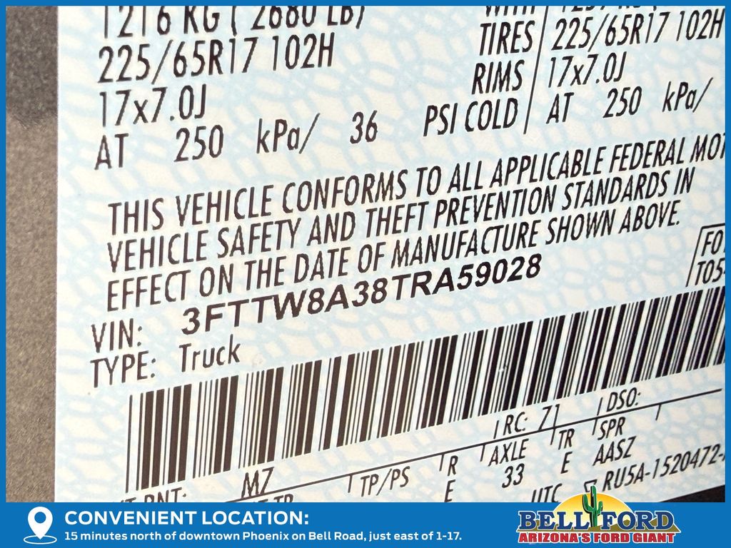 - VIN : 3FTTW8A38TRA59028