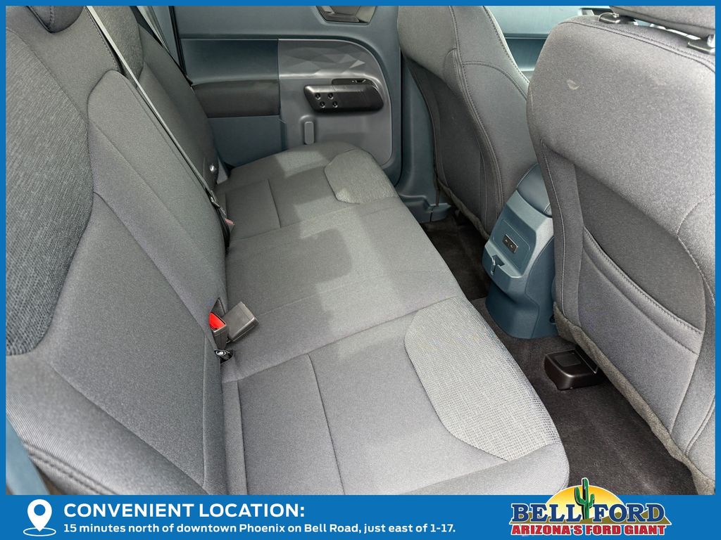 This Ford Maverick is equipped with the following options: Equipment Group 100A (Front Cloth Bucket Seats, Radio: AM/FM Stereo with 6 Speakers, SiriusXM with 360L, SYNC 4 with Enhanced Voice Recognition, and Wheels: 17" Steel with Sparkle Silver Painted Cover), Ford Connectivity Package (1-Year Included), Internet access capable: 5G Modem - Ford Connectivity Package, 2.5L I-4 Hybrid, 2.91 Axle Ratio, 4-Wheel Disc Brakes, 6 Speakers, ABS brakes, Air Conditioning, AM/FM radio: SiriusXM with 360L, Apple CarPlay/Android Auto, Auto High Beams, Auto High-beam Headlights, Automatic temperature control, Brake assist, Bumpers: body-color, Compass, Delay-off headlights, Driver door bin, Driver vanity mirror, Dual front impact airbags, Dual front side impact airbags, Electronic Stability Control, Emergency communication system: SYNC 4 911 Assist, Exterior Parking Camera Rear, Front anti-roll bar, Front Bucket Seats, Front Center Armrest, Front reading lights, Front wheel independent suspension, Fully automatic headlights, Illuminated entry, Intersection Assist, Knee airbag, Lane-Keeping System, Low tire pressure warning, Occupant sensing airbag, Outside temperature display, Overhead airbag, Overhead console, Panic alarm, Passenger door bin, Passenger vanity mirror, Power steering, Power windows, Pre-Collision Assist with Automatic Emergency Braking, Radio data system, Rear anti-roll bar, Rear step bumper, Rear-View Camera, Remote keyless entry, Speed control, Speed-sensing steering, Steering wheel mounted audio controls, Telescoping steering wheel, Tilt steering wheel, Traction control, and Trip computer.
