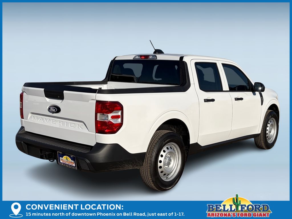 This Ford Maverick is equipped with the following options: Equipment Group 101A (2.91 Axle Ratio, Front Cloth Bucket Seats, Radio: AM/FM Stereo with 6 Speakers, SiriusXM with 360L, SYNC 4 with Enhanced Voice Recognition, and Wheels: 17" Steel with Sparkle Silver Painted Cover), Ford Connectivity Package (1-Year Included), Internet access capable: 5G Modem - Ford Connectivity Package, 2.5L I-4 Hybrid, 2K Trailer Hitch Receiver with 4-Pin Connector, 4-Wheel Disc Brakes, 6 Speakers, ABS brakes, Air Conditioning, AM/FM radio: SiriusXM with 360L, Apple CarPlay/Android Auto, Auto High Beams, Auto High-beam Headlights, Automatic temperature control, Brake assist, Bumpers: body-color, Compass, Delay-off headlights, Driver door bin, Driver vanity mirror, Dual front impact airbags, Dual front side impact airbags, Electronic Stability Control, Emergency communication system: SYNC 4 911 Assist, Exterior Parking Camera Rear, Four wheel independent suspension, Front anti-roll bar, Front Bucket Seats, Front Center Armrest, Front reading lights, Fully automatic headlights, Illuminated entry, Intersection Assist, Knee airbag, Lane-Keeping System, Low tire pressure warning, Occupant sensing airbag, Outside temperature display, Overhead airbag, Overhead console, Panic alarm, Passenger door bin, Passenger vanity mirror, Power steering, Power windows, Pre-Collision Assist with Automatic Emergency Braking, Radio data system, Rear anti-roll bar, Rear step bumper, Rear-View Camera, Remote keyless entry, Speed control, Speed-sensing steering, Steering wheel mounted audio controls, Telescoping steering wheel, Tilt steering wheel, Traction control, and Trip computer.