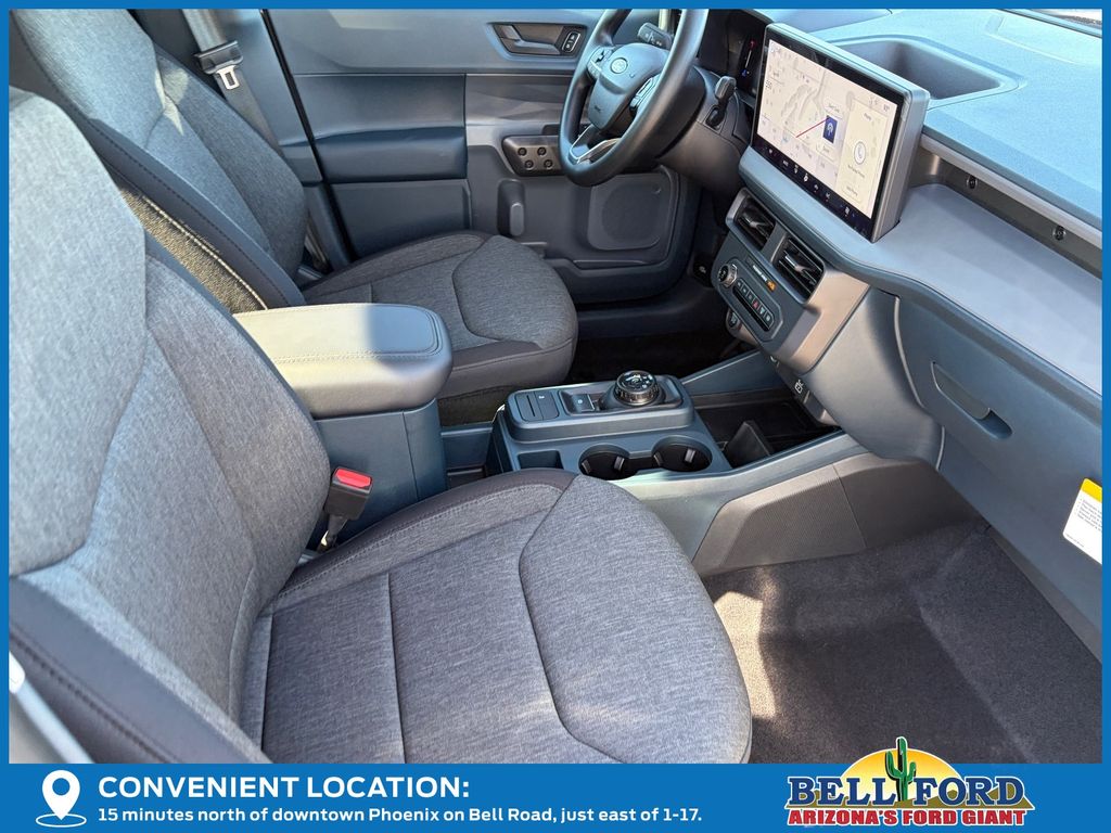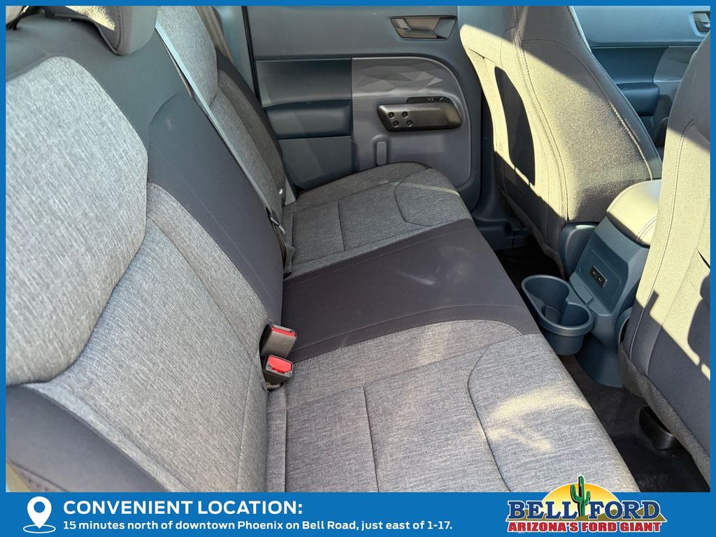 This Ford Maverick is equipped with the following options: Black Appearance Package (Black Grille, Black Interior Accents, Black Painted Mirrors, Unique Cloth Front Bucket Seats with Black Appearance, and Wheels: 19" Black Painted Aluminum), Equipment Group 301A (2.91 Axle Ratio, Radio: AM/FM Stereo with 6 Speakers, SiriusXM with 360L, SYNC 4 with Enhanced Voice Recognition, Unique Cloth Front Bucket Seats, and Wheels: 17" Carbonized Gray Painted Aluminum), Ford Connectivity Package (1-Year Included), Internet access capable: 5G Modem - Ford Connectivity Package, 2.5L I-4 Hybrid, 4-Wheel Disc Brakes, 6 Speakers, ABS brakes, Air Conditioning, Alloy wheels, AM/FM radio: SiriusXM with 360L, Apple CarPlay/Android Auto, Auto High Beams, Auto High-beam Headlights, Automatic temperature control, Brake assist, Bumpers: body-color, Compass, Delay-off headlights, Driver door bin, Driver vanity mirror, Dual front impact airbags, Dual front side impact airbags, Electronic Stability Control, Emergency communication system: SYNC 4 911 Assist, Exterior Parking Camera Rear, Four wheel independent suspension, Front anti-roll bar, Front Bucket Seats, Front Center Armrest, Front reading lights, Fully automatic headlights, Illuminated entry, Intersection Assist, Knee airbag, Lane-Keeping System, Low tire pressure warning, Occupant sensing airbag, Outside temperature display, Overhead airbag, Overhead console, Panic alarm, Passenger door bin, Passenger vanity mirror, Power door mirrors, Power steering, Power windows, Pre-Collision Assist with Automatic Emergency Braking, Radio data system, Rear anti-roll bar, Rear seat center armrest, Rear step bumper, Rear-View Camera, Remote keyless entry, Security system, Speed control, Speed-sensing steering, Steering wheel mounted audio controls, Telescoping steering wheel, Tilt steering wheel, Traction control, and Trip computer.