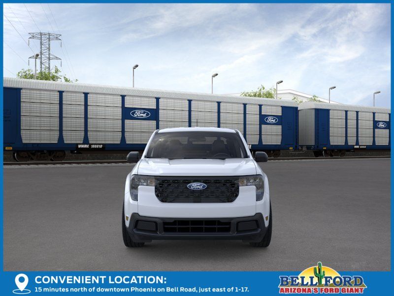 This Ford Maverick is equipped with the following options: Equipment Group 300A (Radio: AM/FM Stereo with 6 Speakers, SiriusXM with 360L, SYNC 4 with Enhanced Voice Recognition, Unique Cloth Front Bucket Seats, and Wheels: 17" Carbonized Gray Painted Aluminum), Ford Connectivity Package (1-Year Included), Internet access capable: 5G Modem - Ford Connectivity Package, 2.5L I-4 Hybrid, 2.91 Axle Ratio, 4-Wheel Disc Brakes, 6 Speakers, ABS brakes, Air Conditioning, Alloy wheels, AM/FM radio: SiriusXM with 360L, Apple CarPlay/Android Auto, Auto High Beams, Auto High-beam Headlights, Automatic temperature control, Brake assist, Bumpers: body-color, Compass, Delay-off headlights, Driver door bin, Driver vanity mirror, Dual front impact airbags, Dual front side impact airbags, Electronic Stability Control, Emergency communication system: SYNC 4 911 Assist, Exterior Parking Camera Rear, Front anti-roll bar, Front Bucket Seats, Front Center Armrest, Front reading lights, Front wheel independent suspension, Fully automatic headlights, Illuminated entry, Intersection Assist, Knee airbag, Lane-Keeping System, Low tire pressure warning, Occupant sensing airbag, Outside temperature display, Overhead airbag, Overhead console, Panic alarm, Passenger door bin, Passenger vanity mirror, Power door mirrors, Power steering, Power windows, Pre-Collision Assist with Automatic Emergency Braking, Radio data system, Rear anti-roll bar, Rear seat center armrest, Rear step bumper, Rear-View Camera, Remote keyless entry, Security system, Speed control, Speed-sensing steering, Steering wheel mounted audio controls, Telescoping steering wheel, Tilt steering wheel, Traction control, and Trip computer.