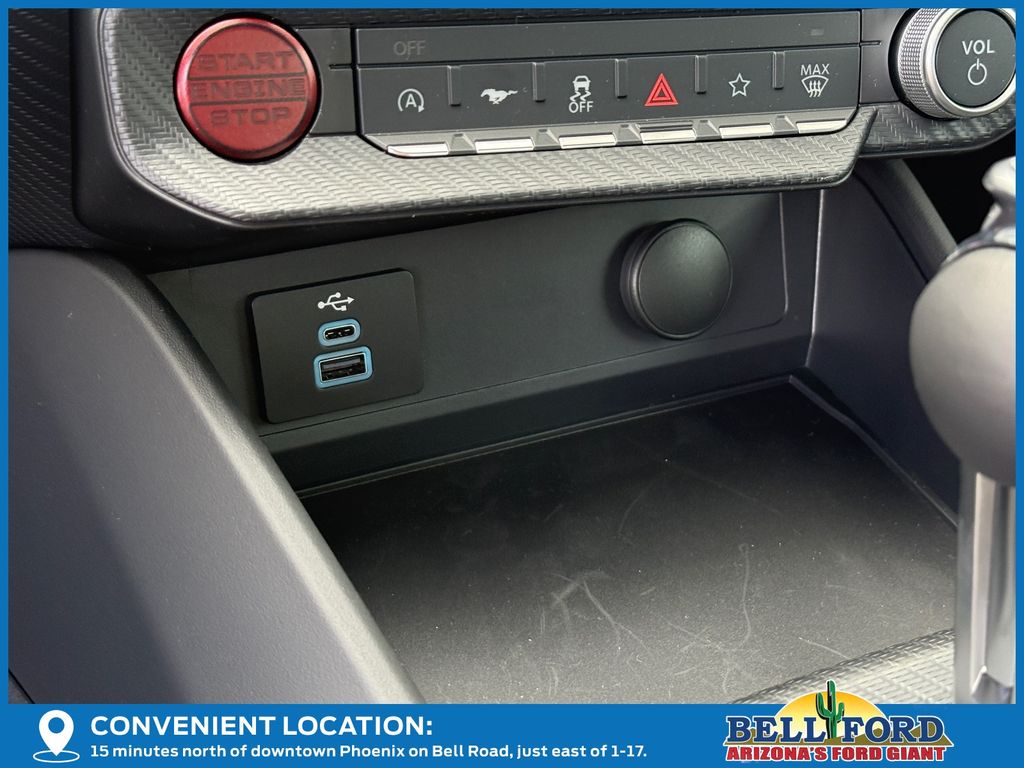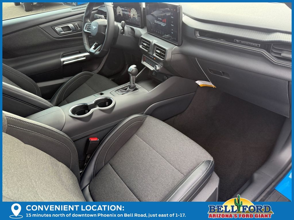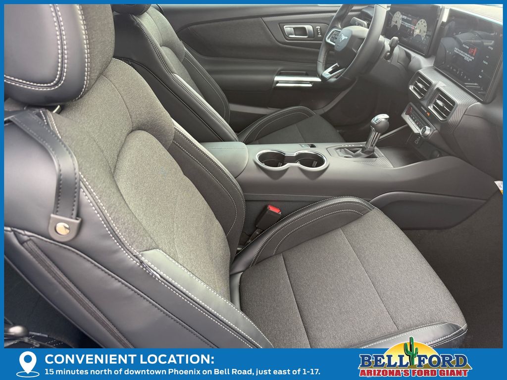 This Ford Mustang is equipped with the following options: Equipment Group 101A High Package (9-Speaker Stereo System, AM/FM Stereo, Cloth/Vinyl Heated Bucket Seats, SiriusXM with 360L and HD Radio, SYNC 4, and Wheels: 18" x 8" Painted Shadow Silver Cast Aluminum), 1st Row Carpeted Black Floor Mats, 4-Wheel Disc Brakes, 6 Speakers, ABS brakes, Air Conditioning, Alloy wheels, AM/FM radio, Auto High-beam Headlights, Automatic temperature control, Brake assist, Bumpers: body-color, Cloth Bucket Seats, Compass, Delay-off headlights, Driver door bin, Driver vanity mirror, Dual front impact airbags, Dual front side impact airbags, Electronic Stability Control, Emergency communication system: 911 Assist, Exterior Parking Camera Rear, Four wheel independent suspension, Front anti-roll bar, Front Bucket Seats, Front Center Armrest, Front dual zone A/C, Front reading lights, Fully automatic headlights, Illuminated entry, Knee airbag, Leather Shift Knob, Low tire pressure warning, Occupant sensing airbag, Outside temperature display, Overhead airbag, Overhead console, Panic alarm, Passenger door bin, Passenger vanity mirror, Power door mirrors, Power steering, Power windows, Radio data system, Rain sensing wipers, Rear anti-roll bar, Rear Parking Sensors, Rear window defroster, Remote keyless entry, Speed control, Speed-sensing steering, Speed-Sensitive Wipers, Split folding rear seat, Sport steering wheel, Steering wheel mounted audio controls, Tachometer, Telescoping steering wheel, Tilt steering wheel, Traction control, Trip computer, Variably intermittent wipers, Voltmeter, and Wheels: 19" x 8.5" Premier Polished Aluminum. Price includes: $1000 - Retail Customer Cash. Exp. 03/31/2026