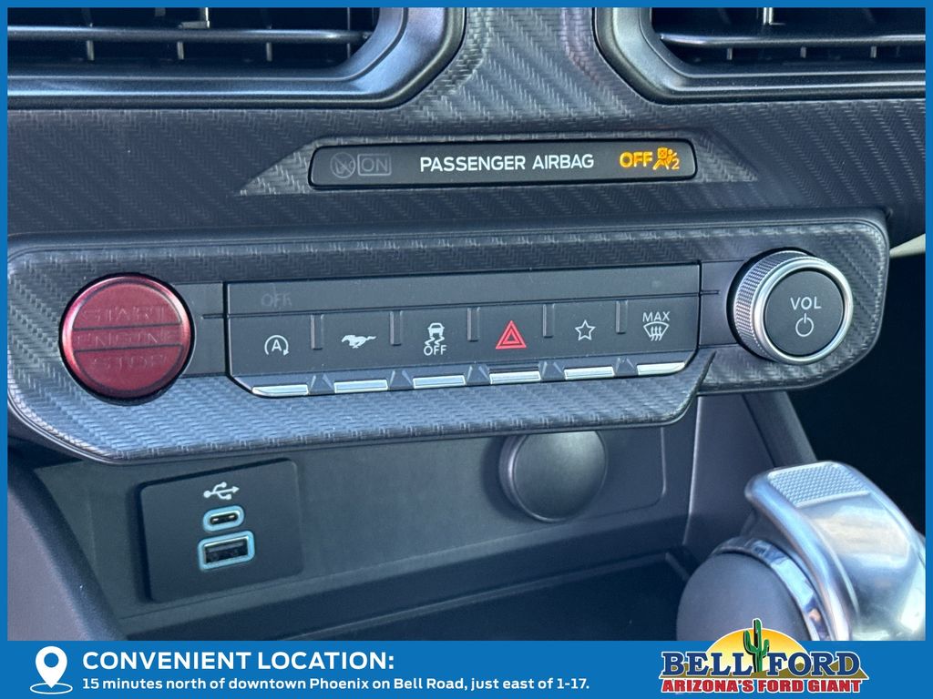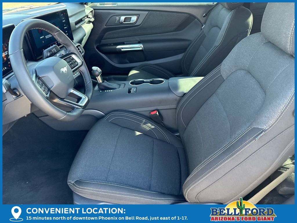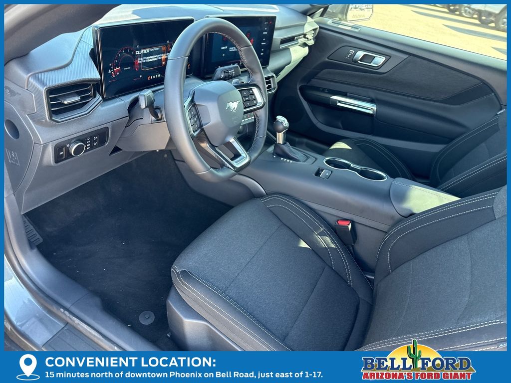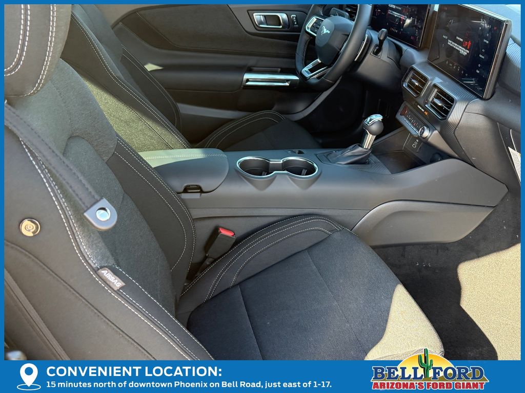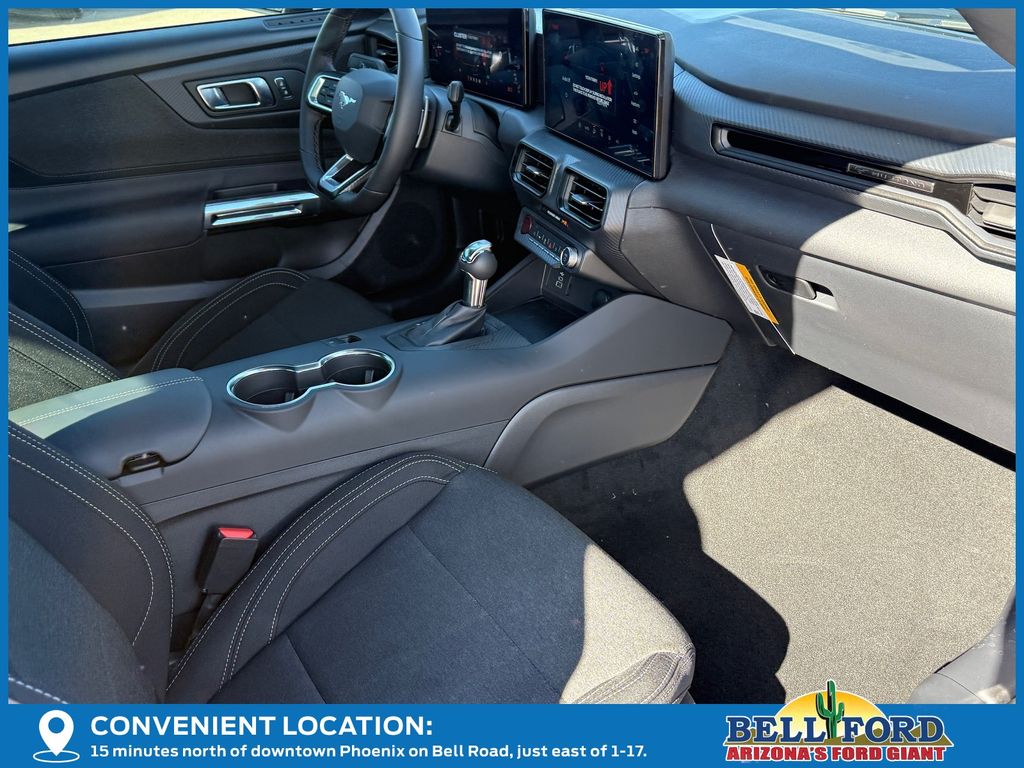 This Ford Mustang is equipped with the following options: Equipment Group 300A Standard Package (AM/FM Stereo, Cloth Bucket Seats, SYNC 4, and Wheels: 8" x 8.5" Ebony Black Painted Aluminum), 1st Row Carpeted Black Floor Mats, 4-Wheel Disc Brakes, 6 Speakers, ABS brakes, Air Conditioning, Alloy wheels, AM/FM radio, Auto High-beam Headlights, Automatic temperature control, Brake assist, Bumpers: body-color, Compass, Delay-off headlights, Driver door bin, Driver vanity mirror, Dual front impact airbags, Dual front side impact airbags, Electronic Stability Control, Emergency communication system: 911 Assist, Exterior Parking Camera Rear, Four wheel independent suspension, Front anti-roll bar, Front Bucket Seats, Front Center Armrest, Front dual zone A/C, Front reading lights, Fully automatic headlights, Illuminated entry, Knee airbag, Leather Shift Knob, Leather steering wheel, Low tire pressure warning, Occupant sensing airbag, Outside temperature display, Overhead airbag, Overhead console, Panic alarm, Passenger door bin, Passenger vanity mirror, Power door mirrors, Power steering, Power windows, Radio data system, Rain sensing wipers, Rear anti-roll bar, Rear Parking Sensors, Rear window defroster, Remote keyless entry, Speed control, Speed-sensing steering, Speed-Sensitive Wipers, Split folding rear seat, Sport steering wheel, Steering wheel mounted audio controls, Tachometer, Telescoping steering wheel, Tilt steering wheel, Traction control, Trip computer, Variably intermittent wipers, Voltmeter, and Wedge Decklid Spoiler. Price includes: $1000 - Retail Customer Cash. Exp. 03/31/2026