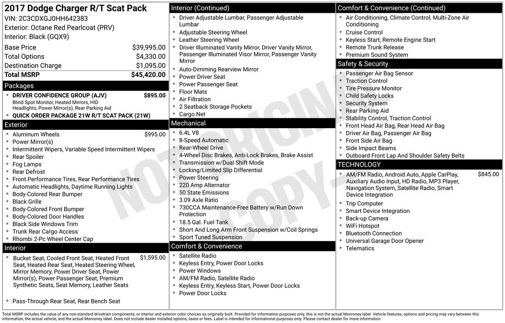 Octane Red Pearlcoat 2017 Dodge Charger R/T Scat Pack RWD 8-Speed Automatic SRT HEMI 6.4L V8 MDS