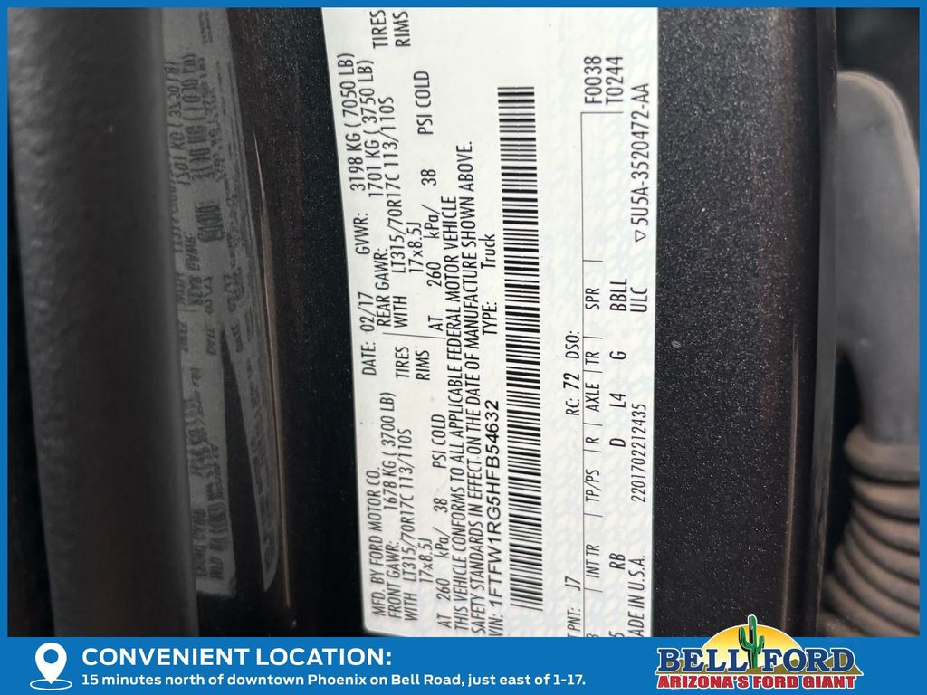 - VIN : 1FTFW1RG5HFB54632