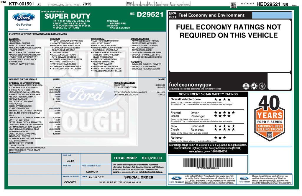 Bronze Fire Metallic 2017 Ford F-250SD Lariat 4WD TorqShift 6-Speed Automatic Power Stroke 6.7L V8 DI 32V OHV Turbodiesel