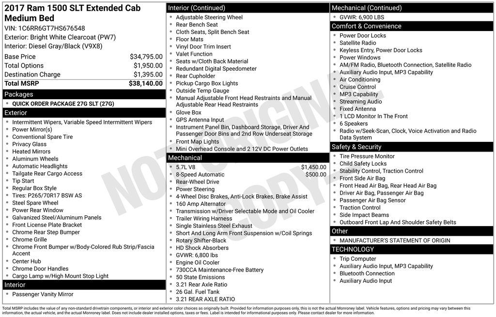 Bright White Clearcoat 2017 Ram 1500 SLT RWD 8-Speed Automatic HEMI 5.7L V8 Multi Displacement VVT