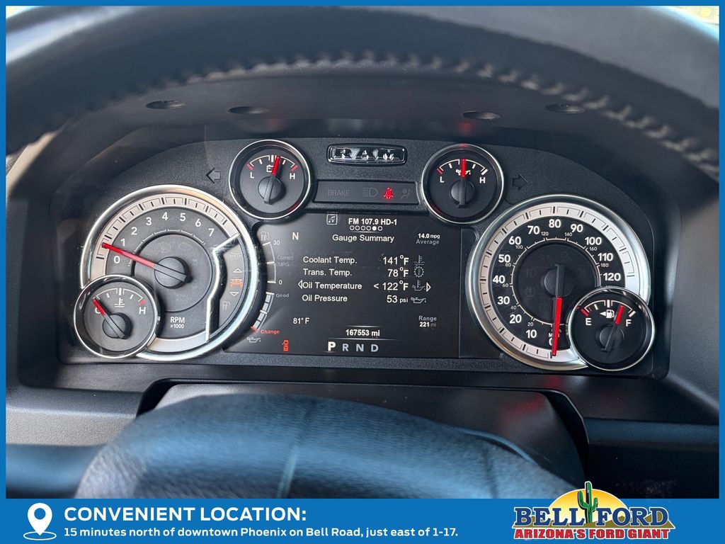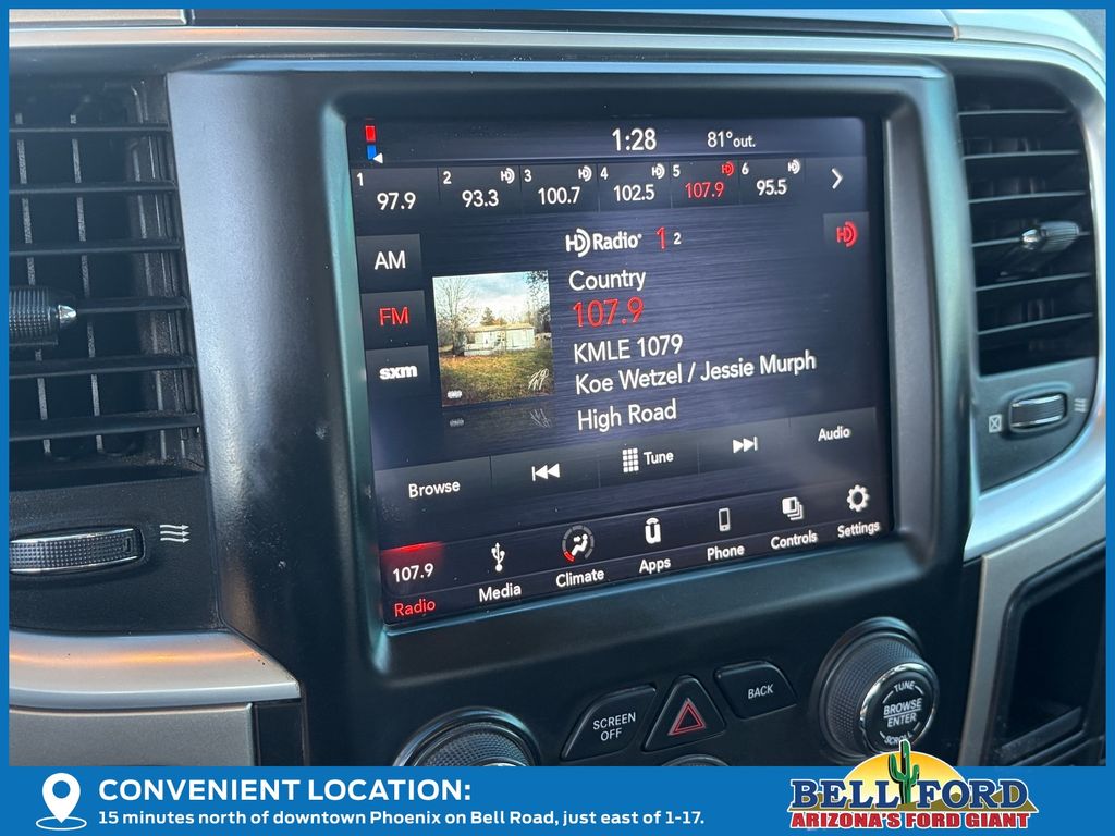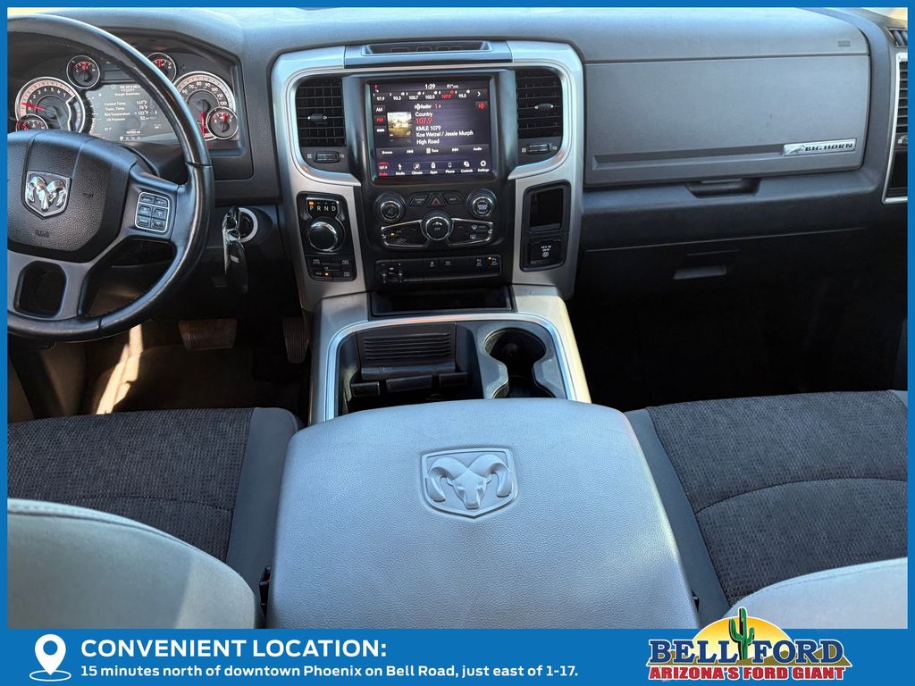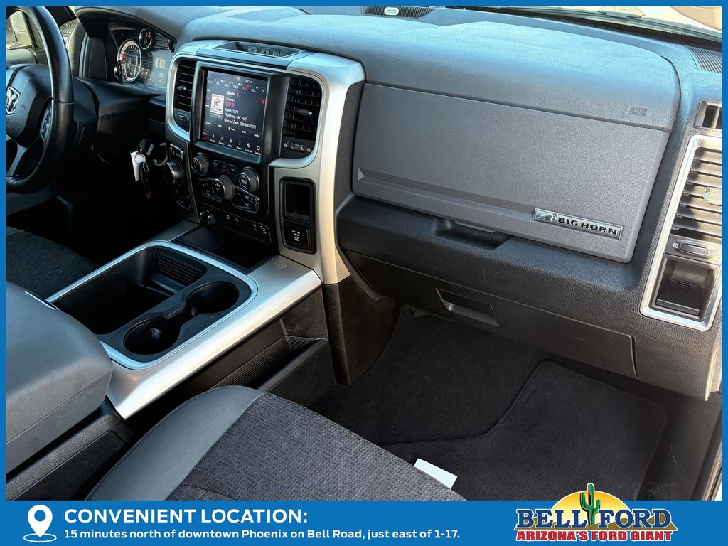 ** HERE AT BELL FORD ITS ALL ABOUT THE EXPERIENCE** Please visit us online at www.bellford.com This Ram 1500 is equipped with the following options: Quick Order Package 26S Big Horn (DISC) (1-Yr SiriusXM Guardian Trial, 40/20/40 Split Bench Seat, Air Conditioning ATC w/Dual Zone Control, Apple CarPlay, Audio Jack Input for Mobile Devices, Auto-Dimming Exterior Mirrors, Charge Only Remote USB Port, Dual Rear Exhaust w/Bright Tips, Exterior Mirrors w/Supplemental Signals, Front Armrest w/3 Cupholders, Glove Box Lamp, GPS Antenna Input, Integrated Voice Command w/Bluetooth, Leather Wrapped Steering Wheel, Overhead Console w/Garage Door Opener, ParkSense Front/Rear Park Assist System, ParkSense Rear Park Assist System, Power-Folding Mirrors, Radio: Uconnect 4C w/8.4" Display, Rear Dome w/On/Off Switch Lamp, Remote Start System, Remote USB Port, SiriusXM Satellite Radio, Storage Tray, Sun Visors w/Illuminated Vanity Mirrors, and Wheels: 20" x 8" Aluminum Chrome Clad), 3.21 Rear Axle Ratio, 4-Wheel Disc Brakes, 6 Speakers, 9 Alpine Speakers w/Subwoofer (DISC), ABS brakes, Active Grille Shutters, Air Conditioning, Alloy wheels, AM/FM radio: SiriusXM, Black Exterior Mirrors, Brake assist, Bumpers: chrome, Center Hub, Compass, Delay-off headlights, Driver door bin, Dual front impact airbags, Dual front side impact airbags, Electronic Shift, Electronic Stability Control, Electronically Controlled Throttle, Engine Oil Heat Exchanger, Exterior Mirrors w/Heating Element, Front anti-roll bar, Front Center Armrest w/Storage, Front reading lights, Front wheel independent suspension, Fully automatic headlights, Heated door mirrors, Heavy-Duty Engine Cooling, Hemi Badge, Illuminated entry, Low tire pressure warning, Manufacturer's Statement of Origin, Occupant sensing airbag, Outside temperature display, Overhead airbag, Overhead console, Panic alarm, ParkView Rear Back-Up Camera, Passenger door bin, Passenger vanity mirror, Power door mirrors, Power steering, Power windows, Radio data system, Rear anti-roll bar, Rear seat center armrest, Rear step bumper, Rear Window Defroster, Remote keyless entry, Speed control, Tachometer, Tilt steering wheel, Tip Start, Traction control, Trip computer, Variably intermittent wipers, and VoltmeteR.