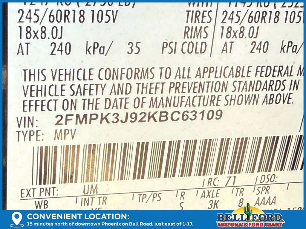 - VIN : 2FMPK3J92KBC63109