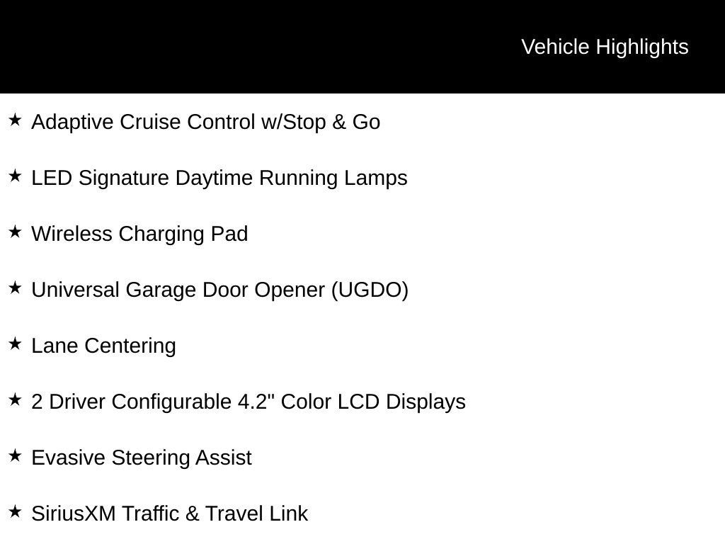 - Adaptive Cruise Control w/Stop & Go