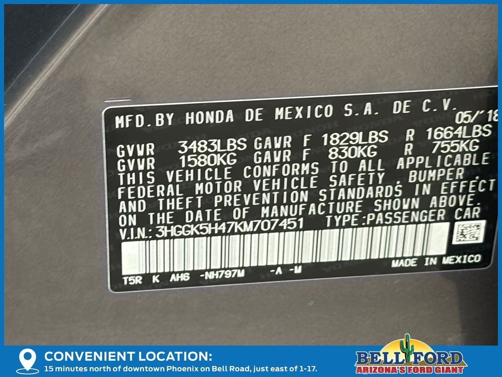 - VIN : 3HGGK5H47KM707451