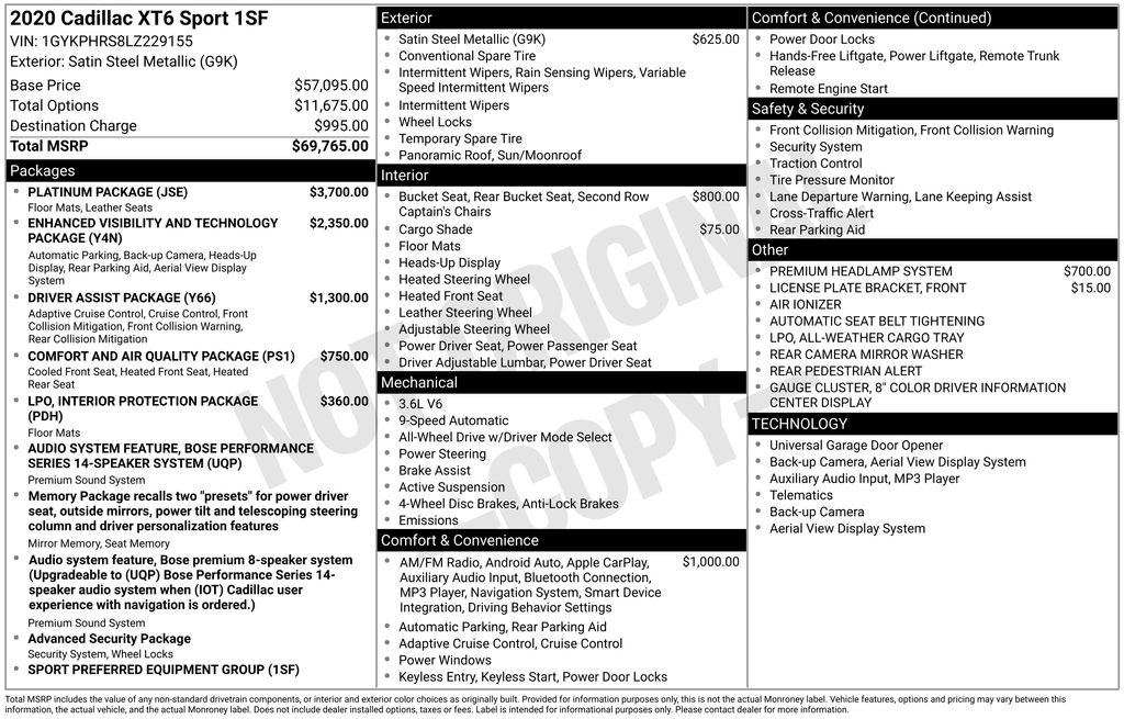 This 2020 Cadillac XT6 Sport checks all the boxes for the discerning driver. Featuring a - SEATING, 6-PASSENGER, 2nd row folding Captain's Chairs - Cadillac User Experience with embedded navigation - Platinum Package with semi-aniline leather seating, leather-wrapped interior, and microfiber sueded headliner - Comfort and Air Quality Package with air ionizer, ventilated front seats, and heated rear seats - Enhanced Visibility and Technology Package with Head-Up Display, Surround Vision, and Automatic Parking Assist.